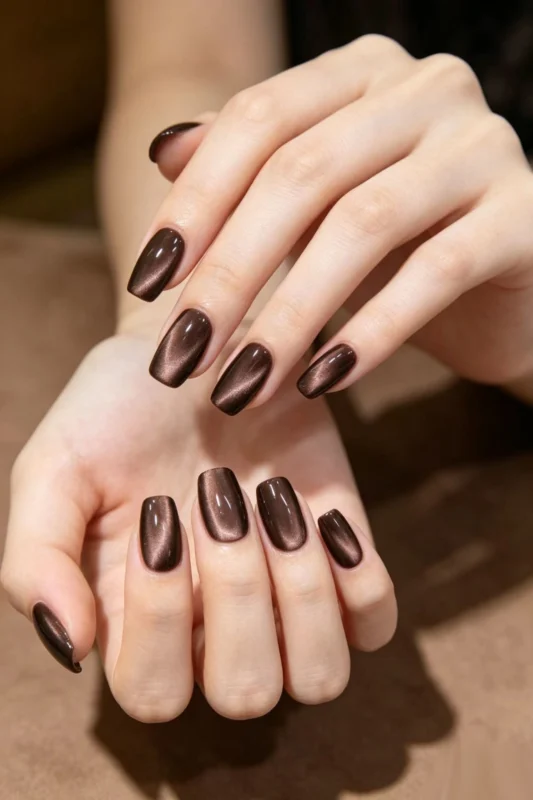 Ombre Cat Eye Protez Tırnak 10 Adet El Yapımı Takma Tırnak Seti 2106