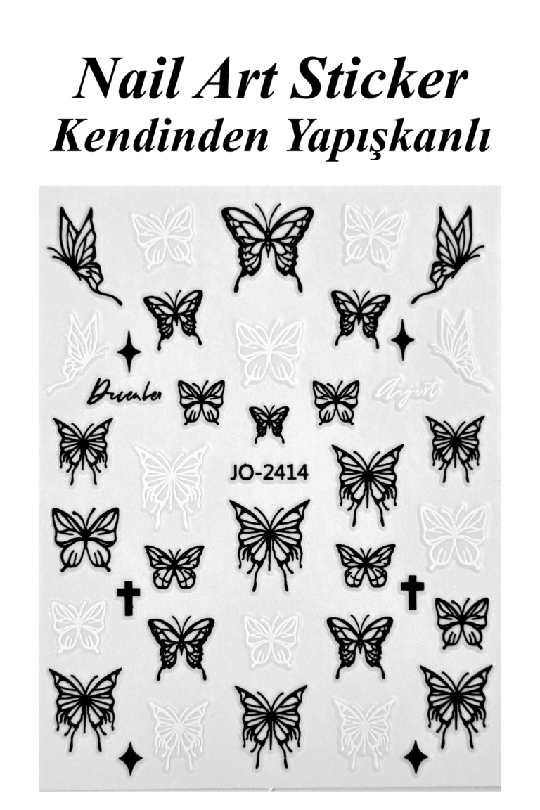 Simli Siyah Beyaz Protez Tırnak 10 Adet El Yapımı Takma Tırnak Seti 2201