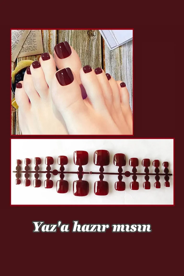 Ayak Takma Tırnak Koyu Bordo 24 Adet Ayak için Takma Tırnak-009-14