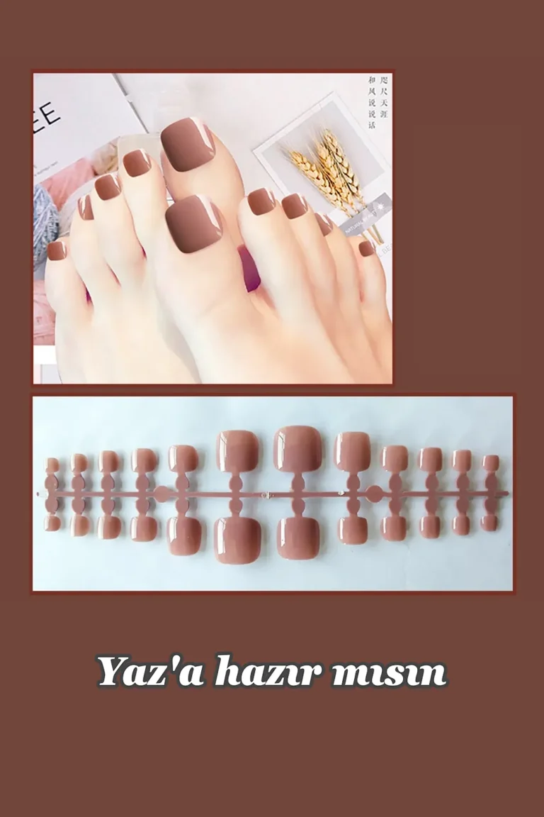 Ayak Takma Tırnak Kahverengi 24 Adet Ayak için Takma Tırnak-009-05