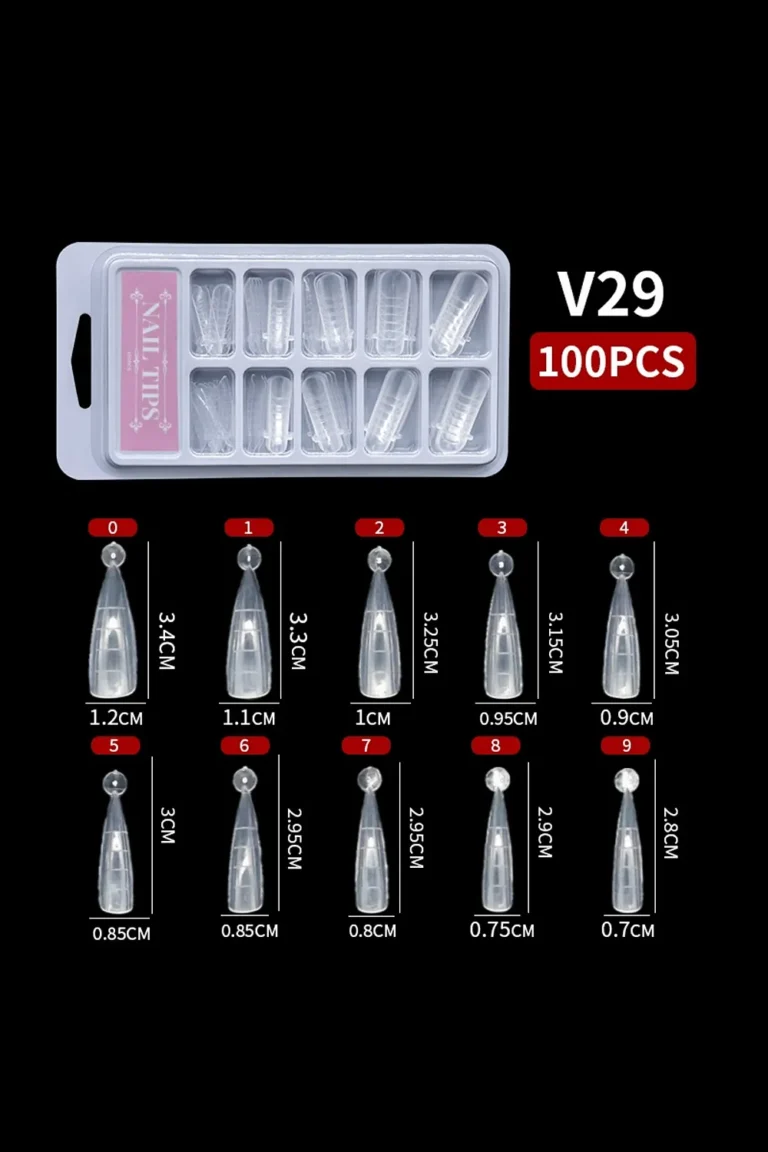 10 Farklı Boy 100 Adet Ölçekli Poly Jel Kalıp Tips Farklı Şekillerde Poly Jel Kalıp Tips V29