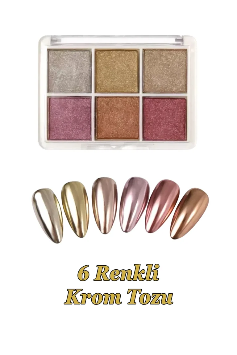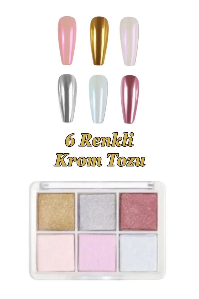 Krom Tozu 6 Renk Nail Art Ayna Tozu İnci Tozu Kullanımı Kolay 02