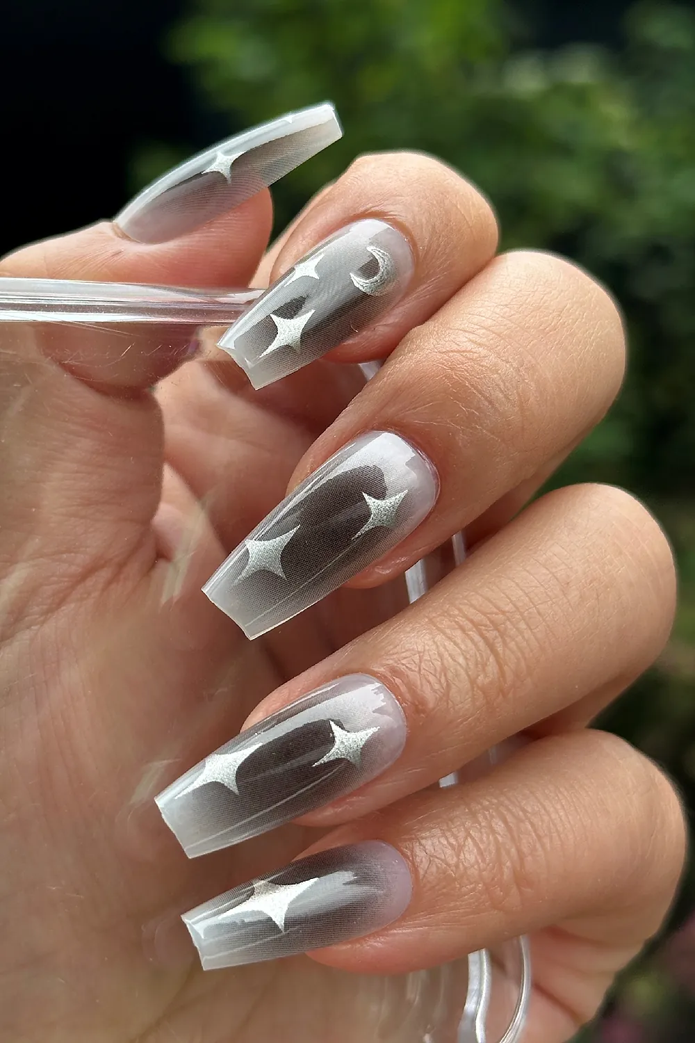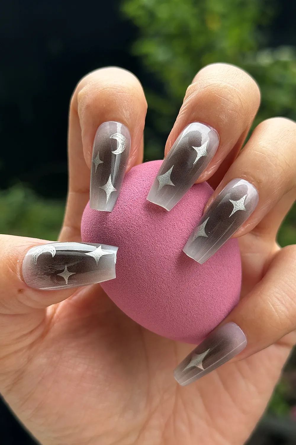 24 Adet Ay Yıldız Desenli Takma Tırnak Seti R722