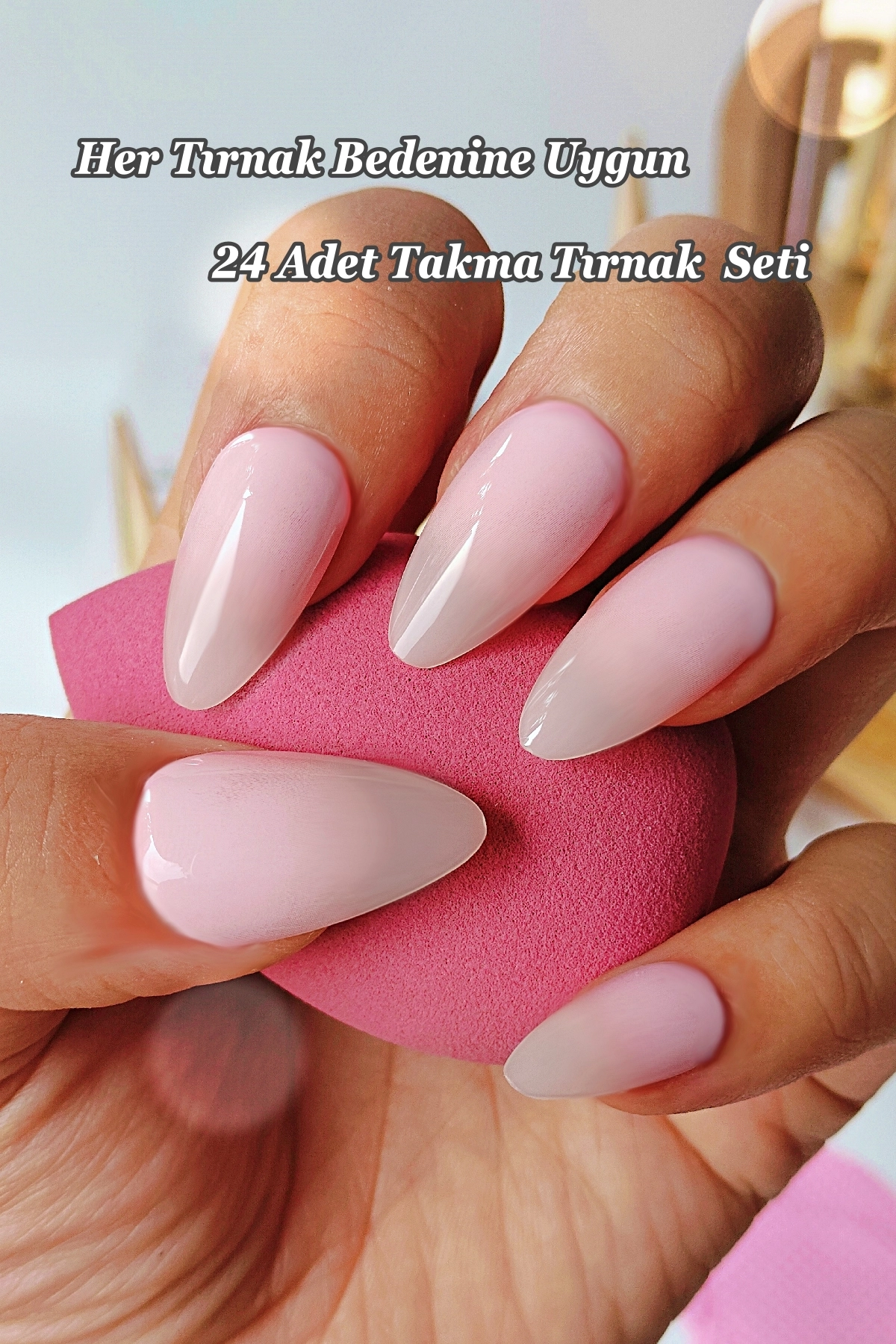 24 Adet Badem Takma Tırnak Seti Orta Uzunlukta DY195