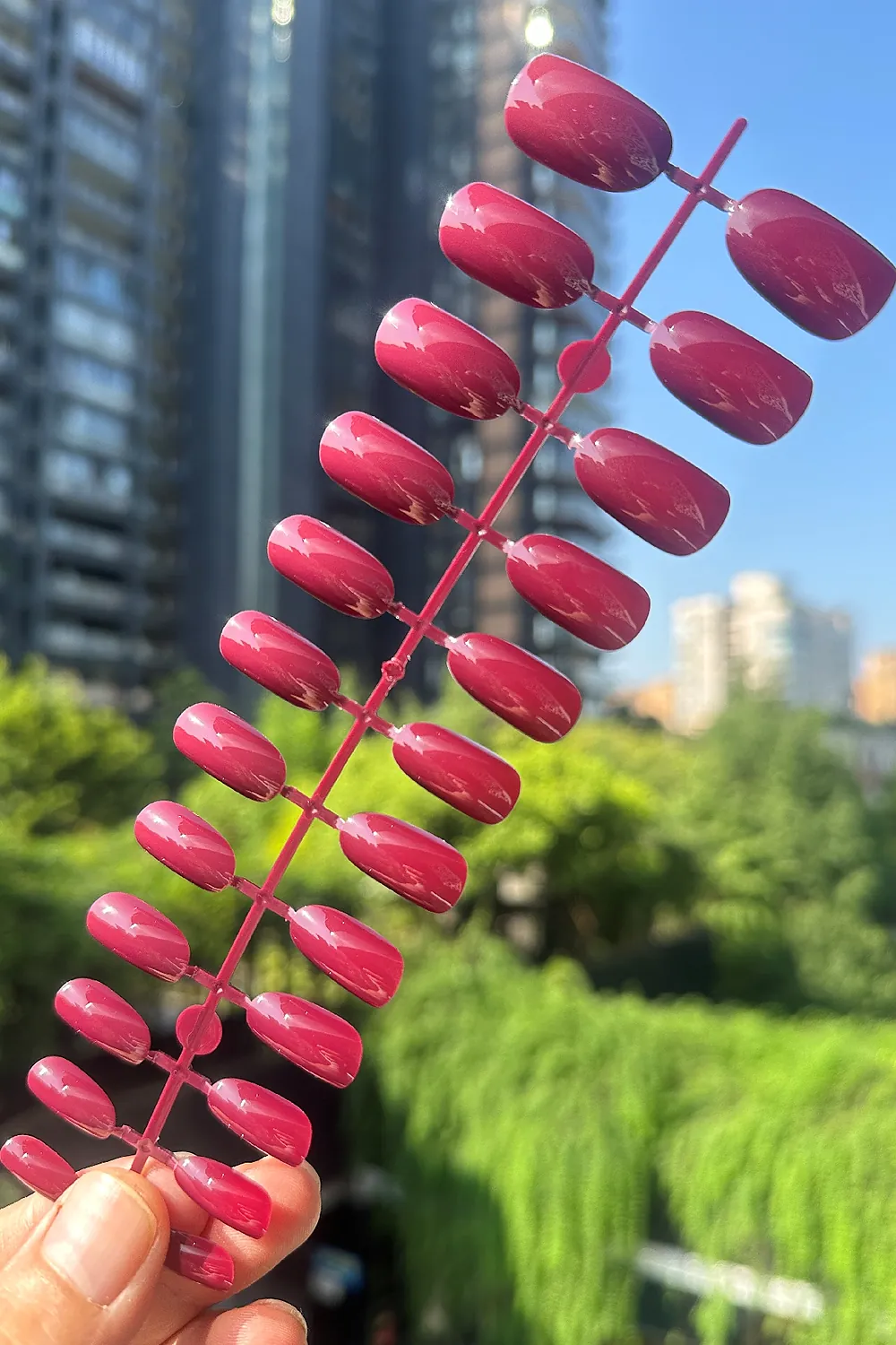 24 Adet Bordo Oval Orta Uzun Takma Tırnak 823