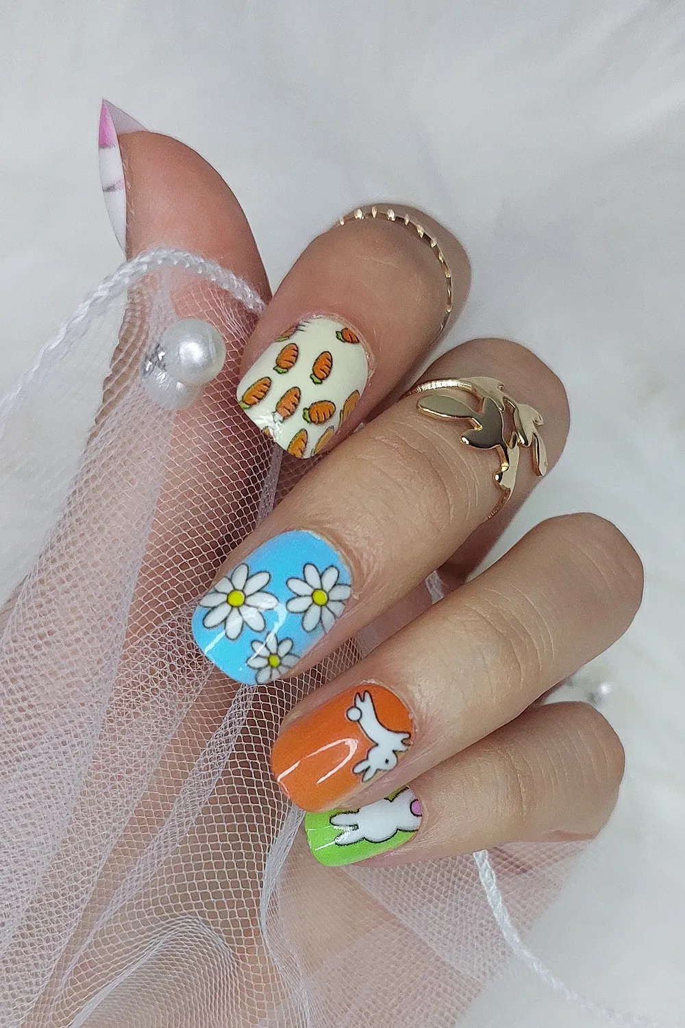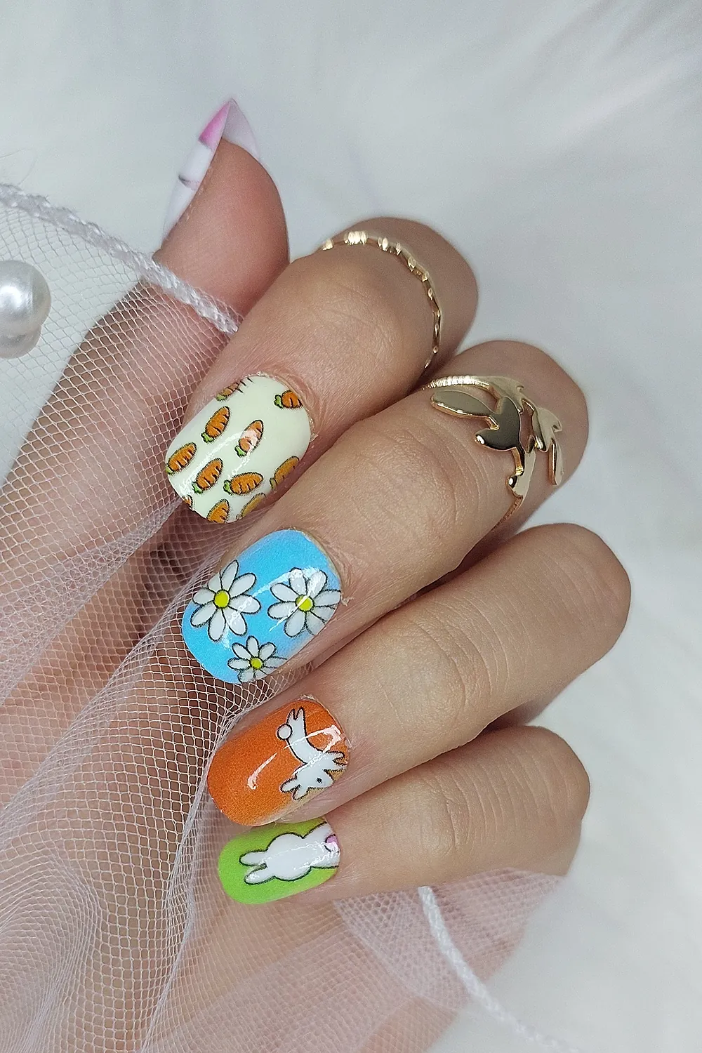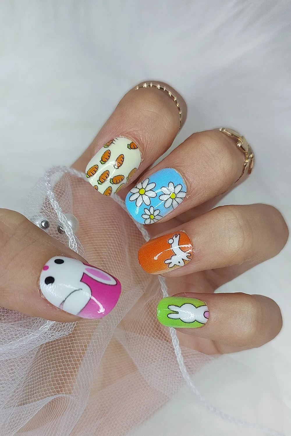 24 Adet Çocuklar için Renkli Kısa Takma Tırnak TET120