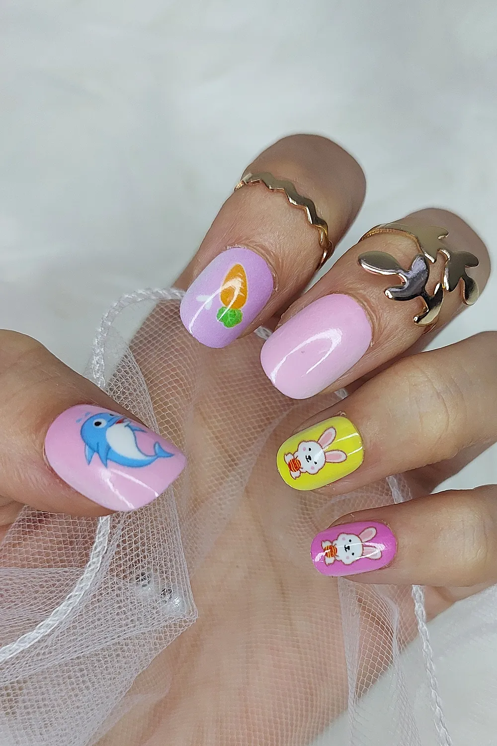 [Paket İçeriği] 24 adet çocuklar için takma tırnak; Sıkça Sorunlan Sorular: Çocuklar kullanabilir mi? Cilde zarar vermeyen yapıştırıcı ile Easy Beauty takma tırnakları çocuklarınızın da kullanmasına izin verebilirsiniz; Üzerine oje sürülebilir mi? Evet takma tırnağınızın üzerine oje sürebilirsiniz; Hiç bir sakıncası yoktur; Kutusu var mı? Renkli takma tırnaklarınız plastik paket içerisinde kargo edilecektir; İçerisinde 24 adet çeşitli boylarda renkli takma tırnak vardır; Her tırnağa uyar mı? Şekil verebilir miyim? Paket içerisinde 24 adet tırnak gönderilecektir; 12 tırnak boyutu vardır; Genel olarak bütün tırnaklara uyacaktır; Büyük gelen tırnakları törpü ile tırnağınıza uygun hale getirebilirsiniz; Tırnaklar farklı şekillerde ve uzunlukta sunulmaktadır; Eğer şeklini veya uzunluğu beğenmezseniz törpü ile istediğiniz gibi ayarlayabilirsiniz; Takma tırnak neden atar?; Uygulama esnasında tırnağınız ile takma tırnak arasında herhangi bir toz veya boşluk kalması durumunda takma tırnak kısa zamanda atabilir; Tırnağınıza uygun olmayan (küçük veya büyük) cilde zarar vermeyen yapıştırıcı kullanır iseniz veya yapıştırıcı ile turnağınız arasında boşluk kalır ise takma tırnağınız atabilir; Sıvı yapıştırıcının gereğinden az uygulanması durumunda takma tırnağınız atabilir; Yapıştırıcıların hepsi sıcak suda özelliklerini yitirir; Bu nedenle elleriniz sıcak suda uzun süre kaldı ise (banyo, bulaşık) sonraki bir iki saat tırnaklarınızı korumanız ve zorlamamanız gerekmektedir; Aksi durumda tırnağınız atabilir; Uygulama esnasında tırnak yüzeyinin törpülenmemesi, alkolle tırnak üzerindeki yağın temizlenmemesi, tırnak etlerinin düzgün şekilde ittirilmenesi takma tırnağın atmasına sebep olabilir;