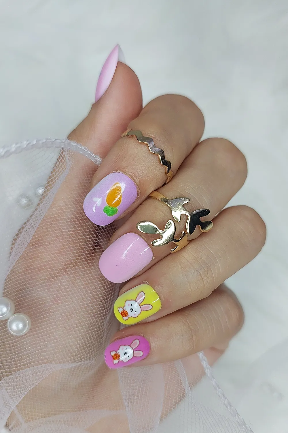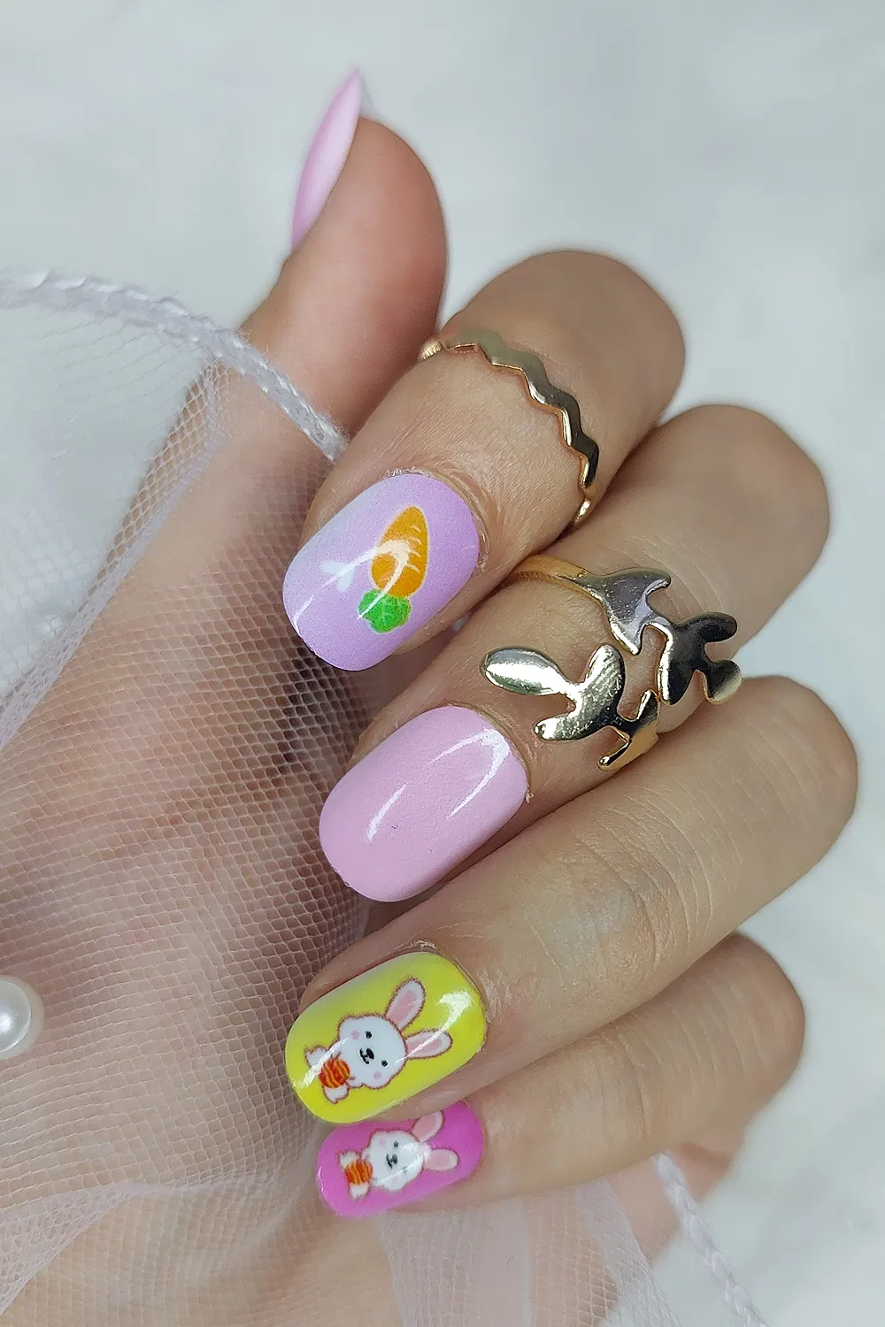 24 Adet Çocuklar için Renkli Kısa Takma Tırnak TET126