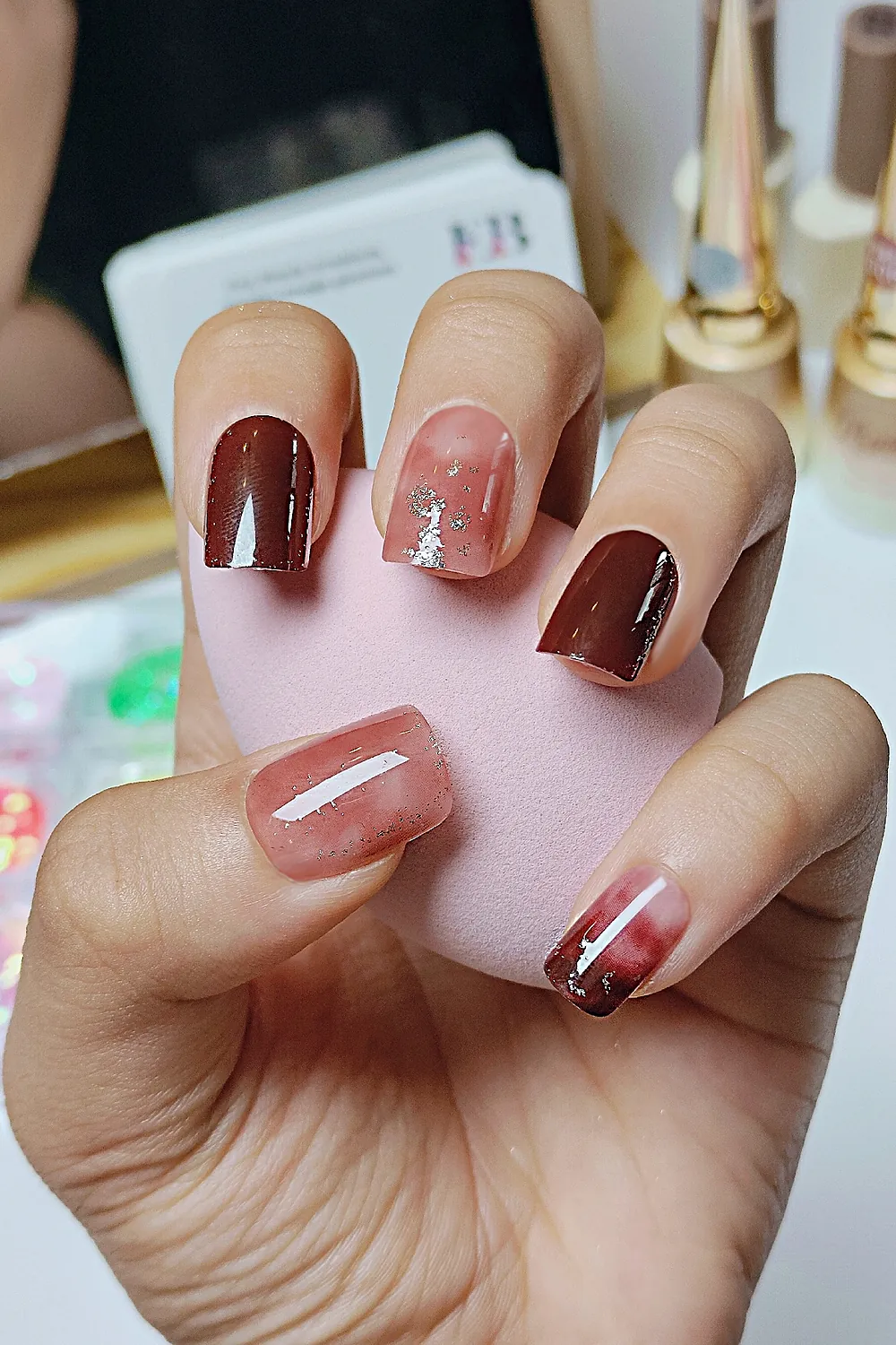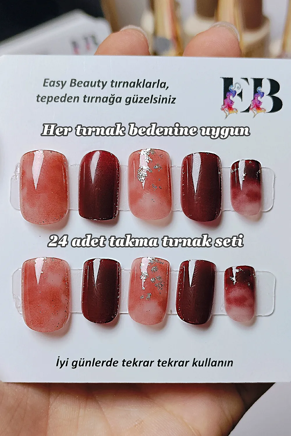 24 Adet Doğal Görünümlü Bordo Kısa Takma Tırnak Seti R681