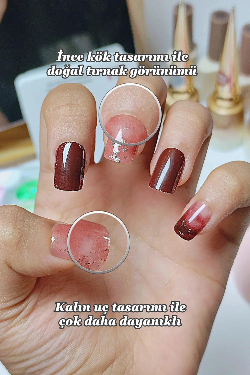 [Akıllı Tasarım] Tırnakların kök tarafının ince dizaynı sayesinde gerçek tırnağa yakın bir görünüm elde edersiniz. Tırnak ucunun kalın olması sayesinde ise Easy Beauty tırnaklar daha sağlamdır ve kolay kolay kırılmaz veya çatlamaz.