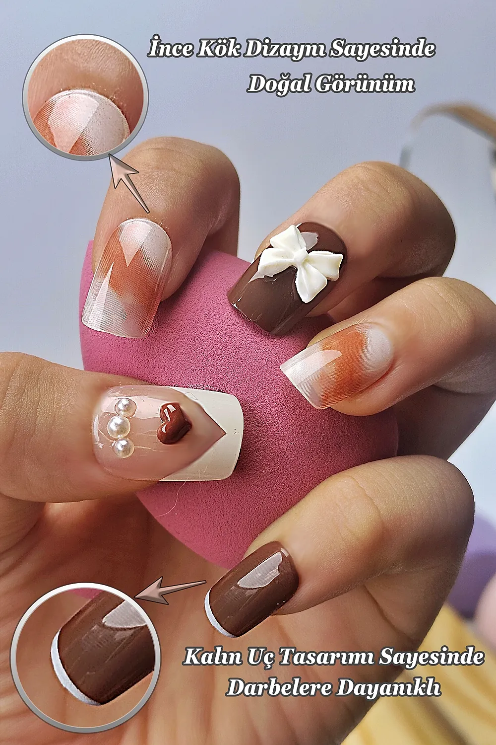[Akıllı Tasarım] Tırnakların kök tarafının ince dizaynı sayesinde gerçek tırnağa yakın bir görünüm elde edersiniz. Tırnak ucunun kalın olması sayesinde ise Easy Beauty tırnaklar daha sağlamdır ve kolay kolay kırılmaz veya çatlamaz.