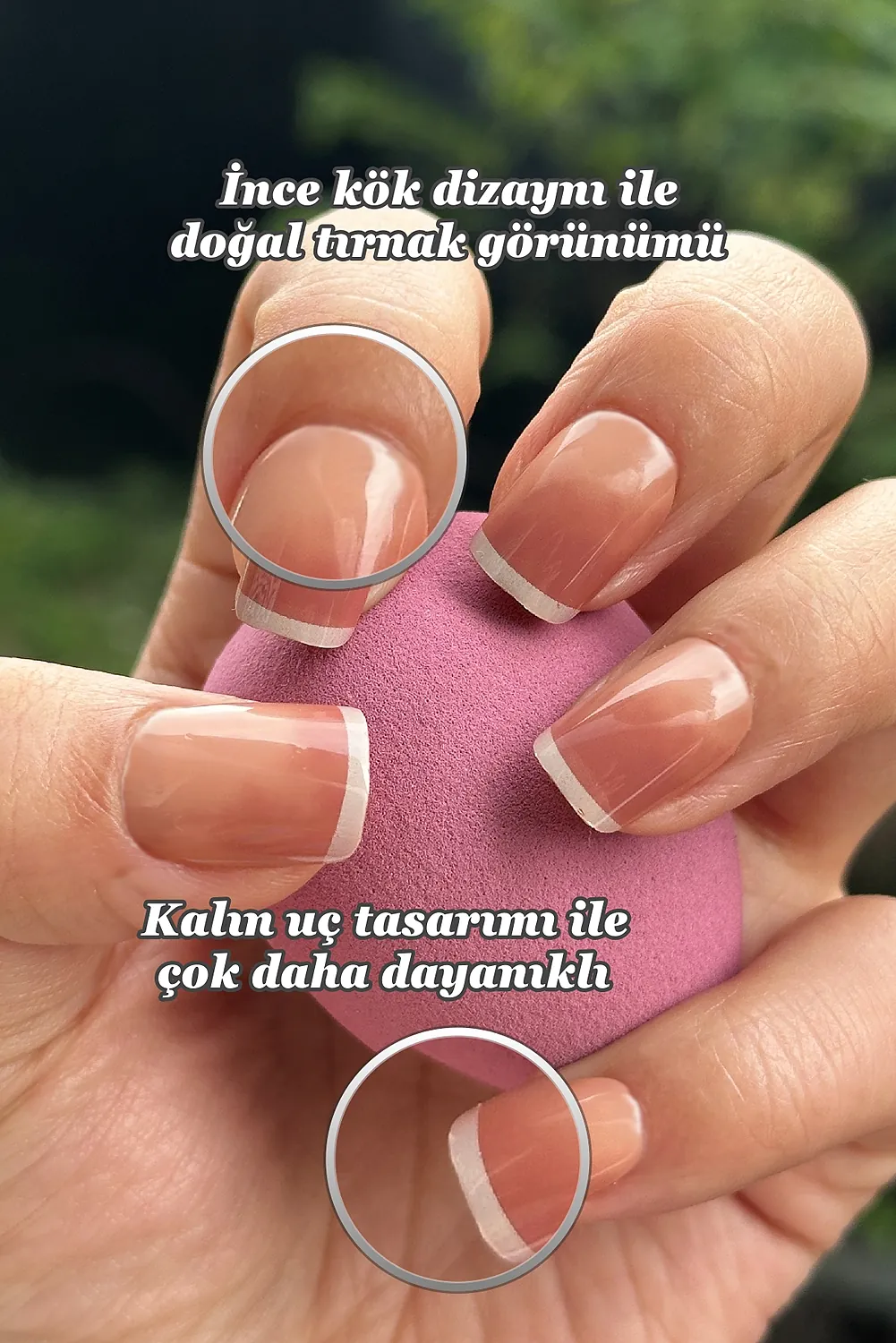 [Akıllı Tasarım] Tırnakların kök tarafının ince dizaynı sayesinde gerçek tırnağa yakın bir görünüm elde edersiniz. Tırnak ucunun kalın olması sayesinde ise Easy Beauty tırnaklar daha sağlamdır ve kolay kolay kırılmaz veya çatlamaz.