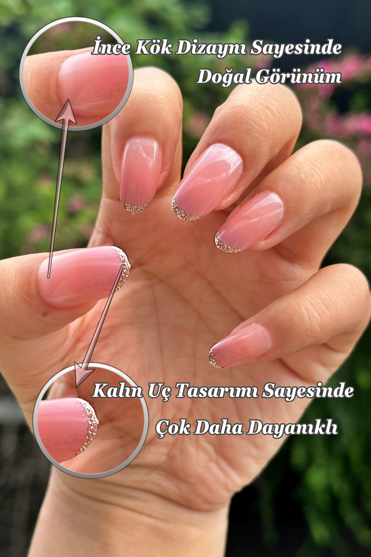 [Akıllı Tasarım] Tırnakların kök tarafının ince dizaynı sayesinde gerçek tırnağa yakın bir görünüm elde edersiniz. Tırnak ucunun kalın olması sayesinde ise Easy Beauty tırnaklar daha sağlamdır ve kolay kolay kırılmaz veya çatlamaz.