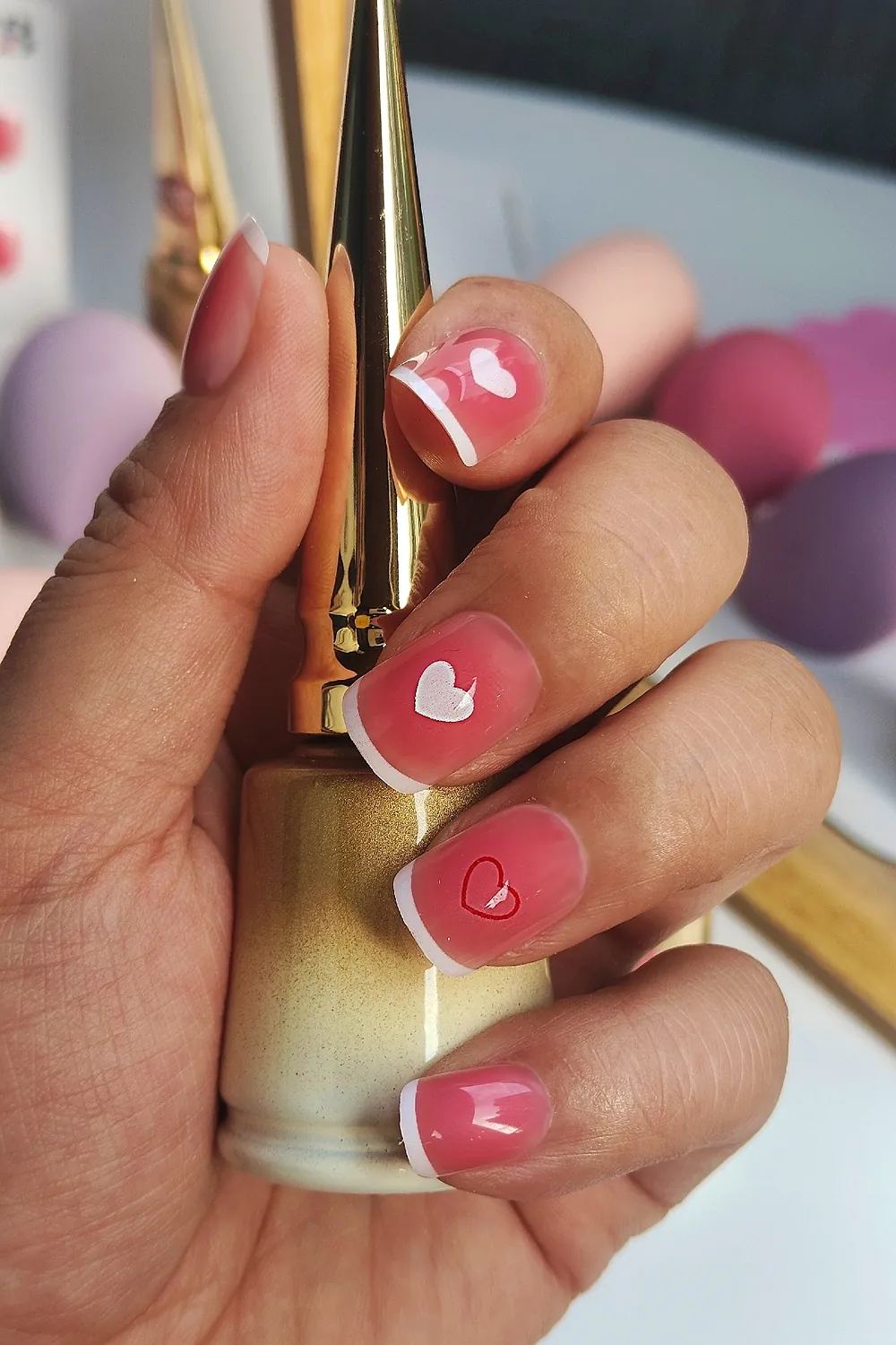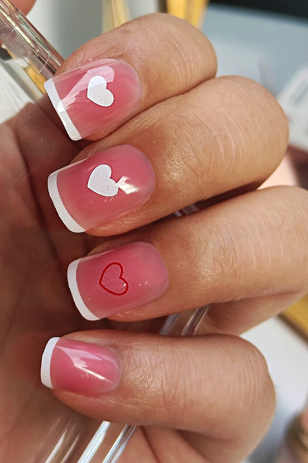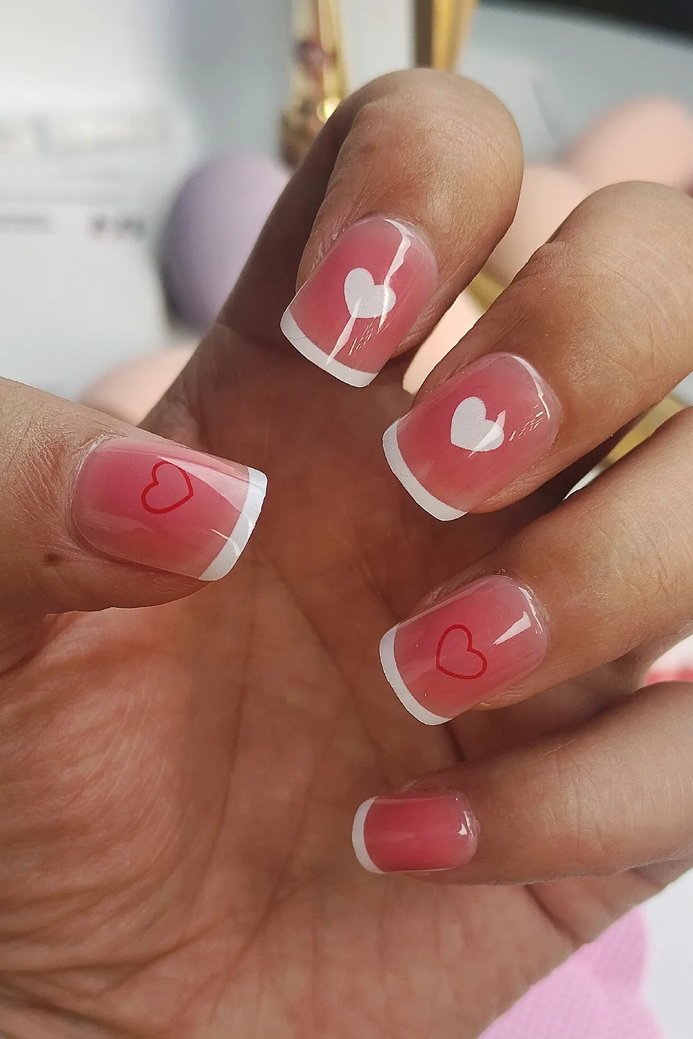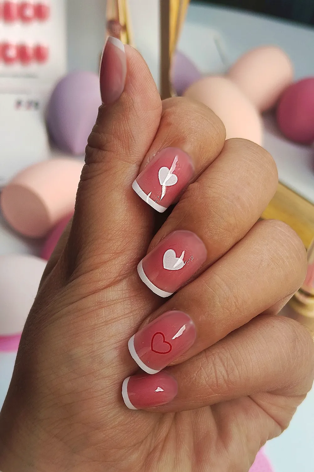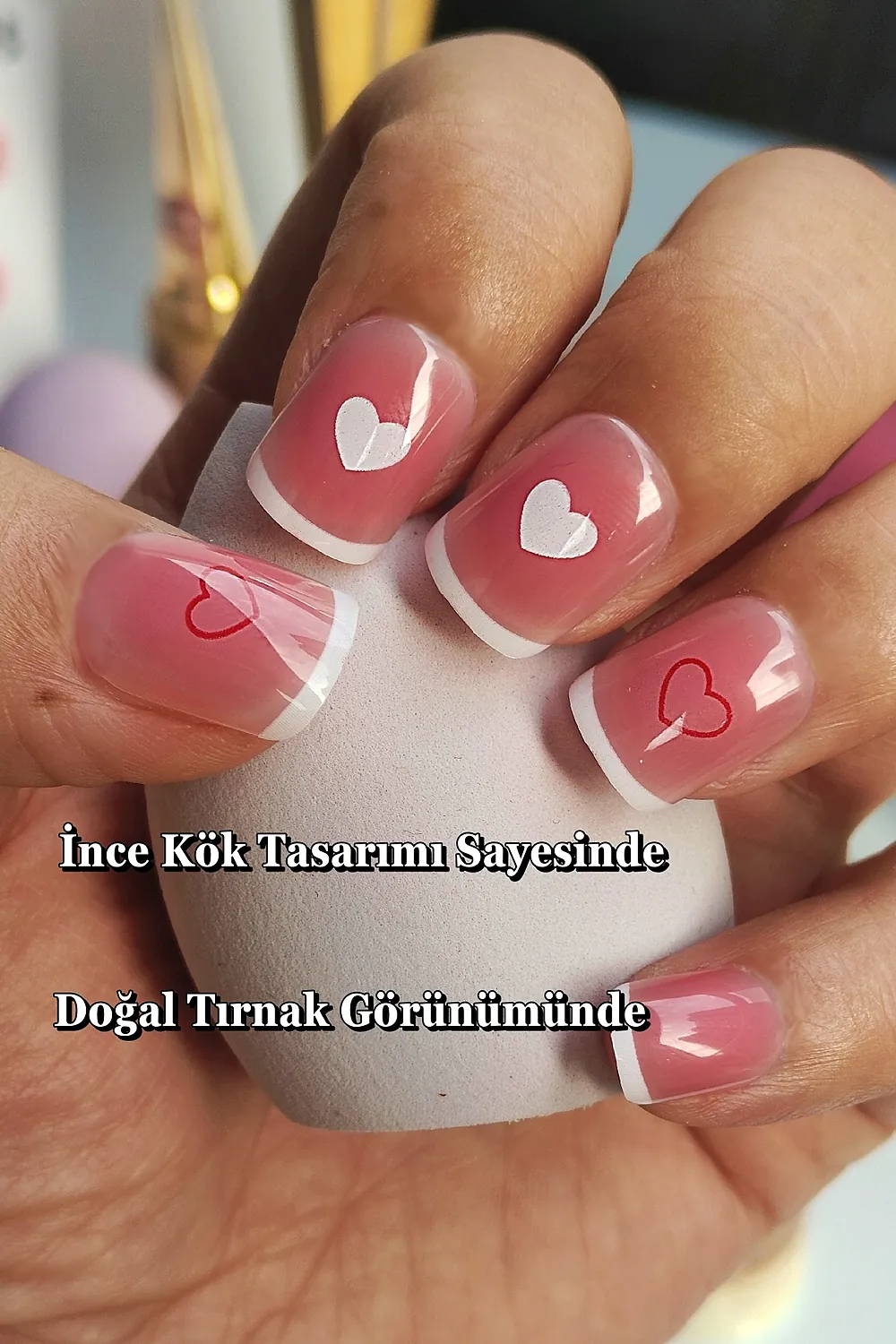 24 Adet French Tırnak Kısa Takma Tırnak Seti Kalpli DY1179