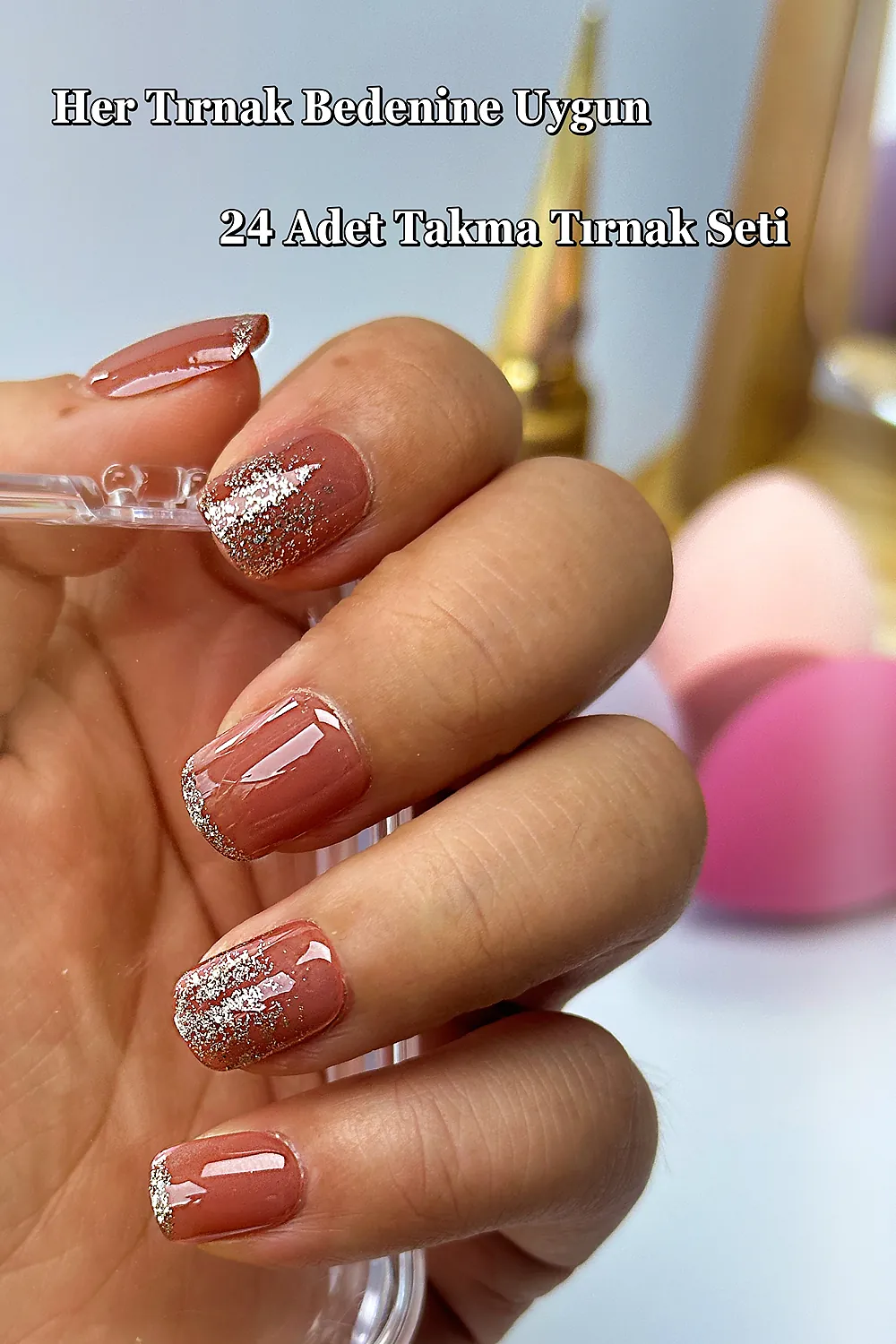 – Bir dakika kadar tırnağın bütün yüzeylerine bastırarak takma tırnağın tamamen yapıştığından emin olun.