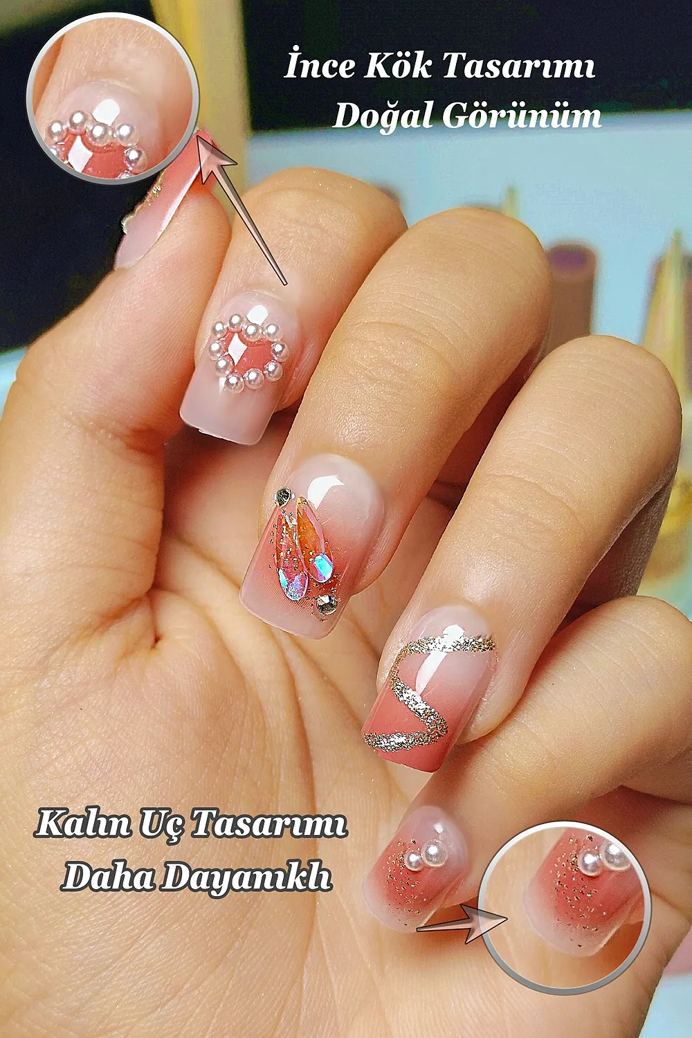 [Akıllı Tasarım] Tırnakların kök tarafının ince dizaynı sayesinde gerçek tırnağa yakın bir görünüm elde edersiniz. Tırnak ucunun kalın olması sayesinde ise Easy Beauty tırnaklar daha sağlamdır ve kolay kolay kırılmaz veya çatlamaz.