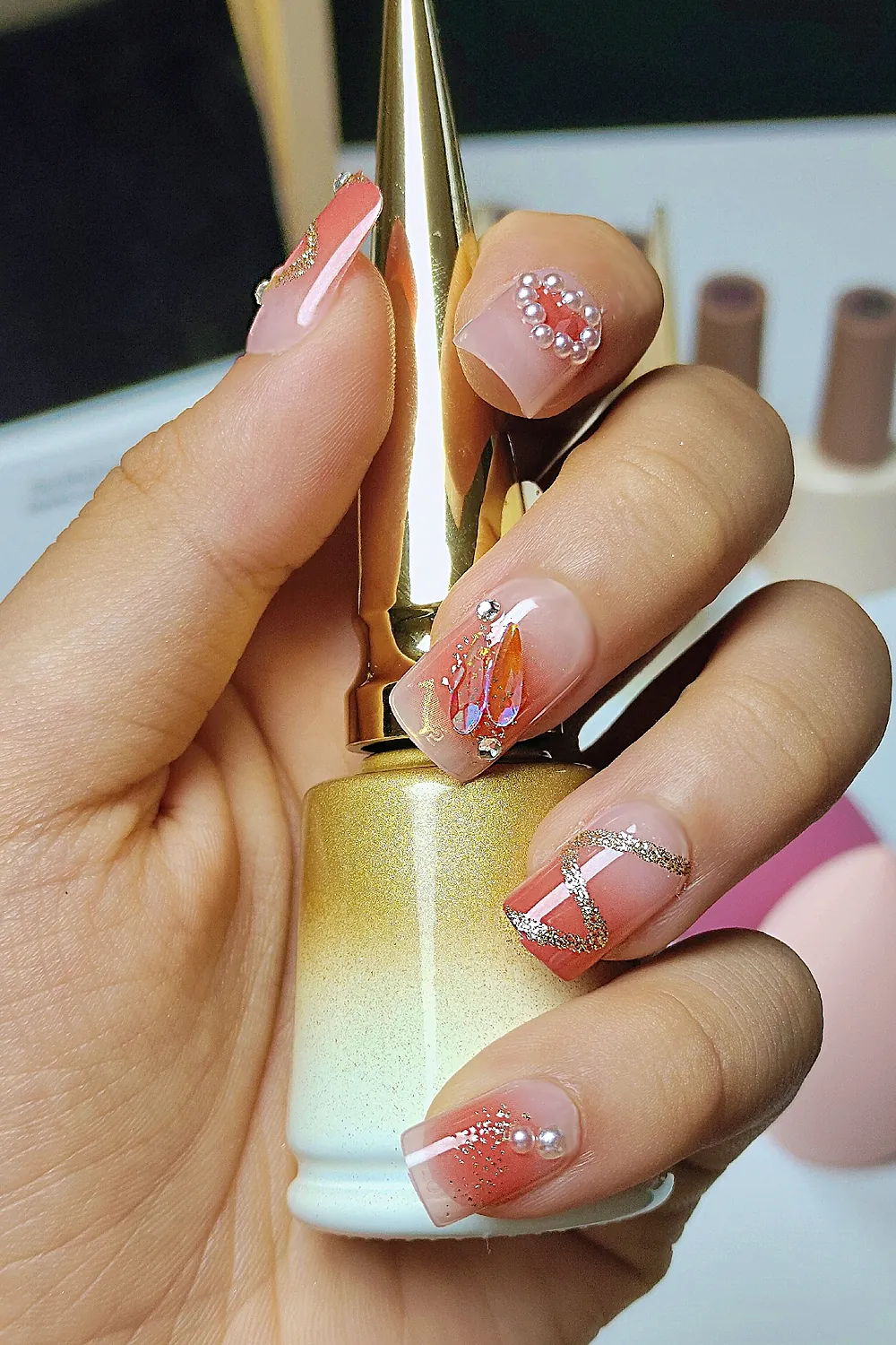 – Bir dakika kadar tırnağın bütün yüzeylerine bastırarak takma tırnağın tamamen yapıştığından emin olun.