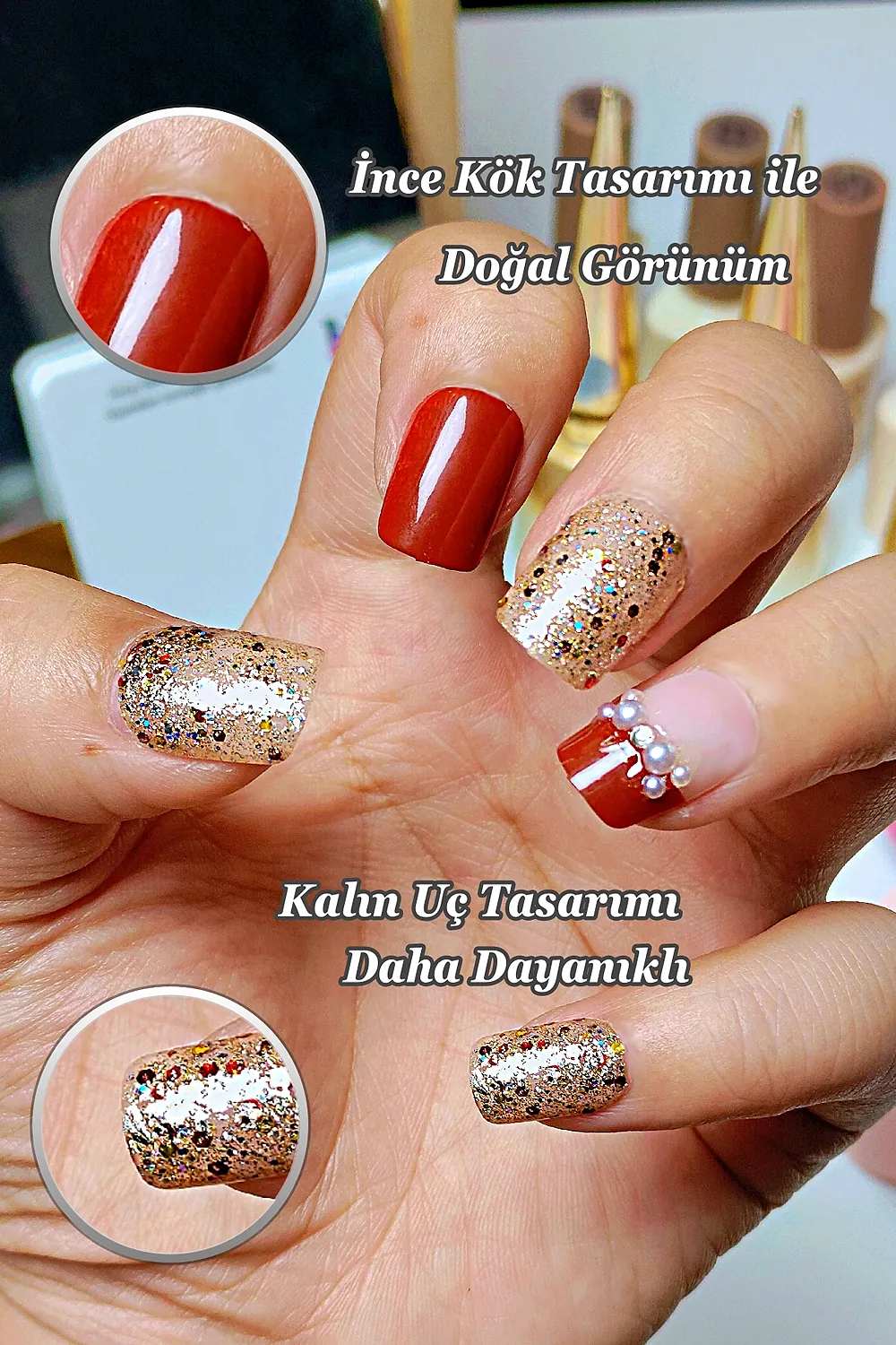 [Akıllı Tasarım] Tırnakların kök tarafının ince dizaynı sayesinde gerçek tırnağa yakın bir görünüm elde edersiniz. Tırnak ucunun kalın olması sayesinde ise Easy Beauty tırnaklar daha sağlamdır ve kolay kolay kırılmaz veya çatlamaz.