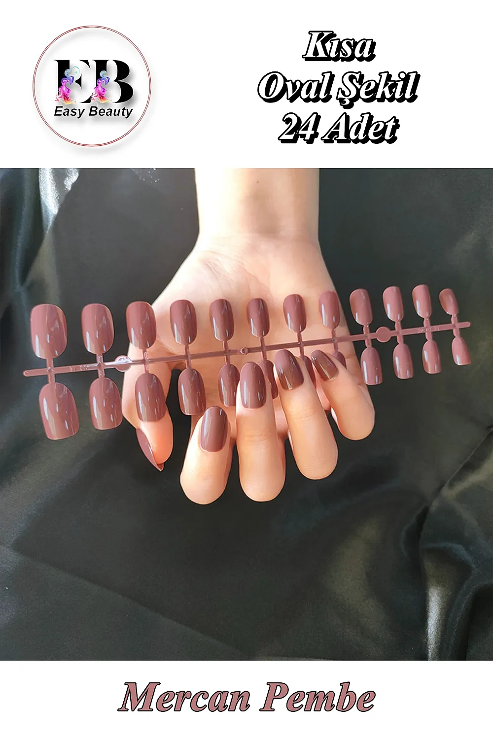 24 Adet Oval Kısa Takma Tırnak Seti 1077