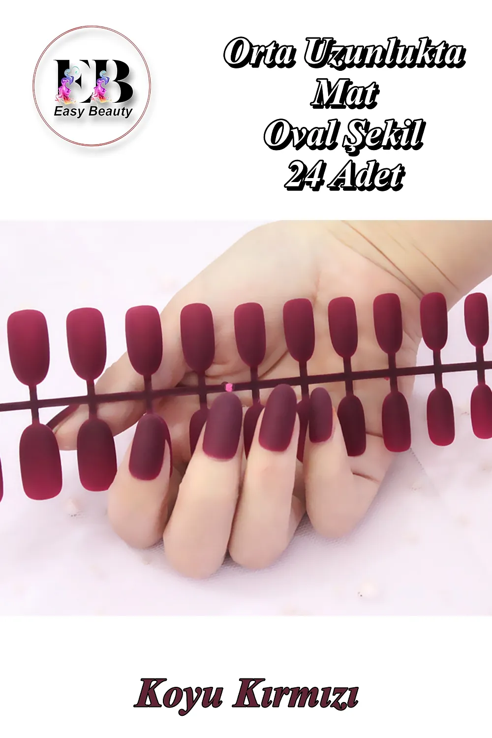 24 Adet Oval Orta Uzun Mat Takma Tırnak 717
