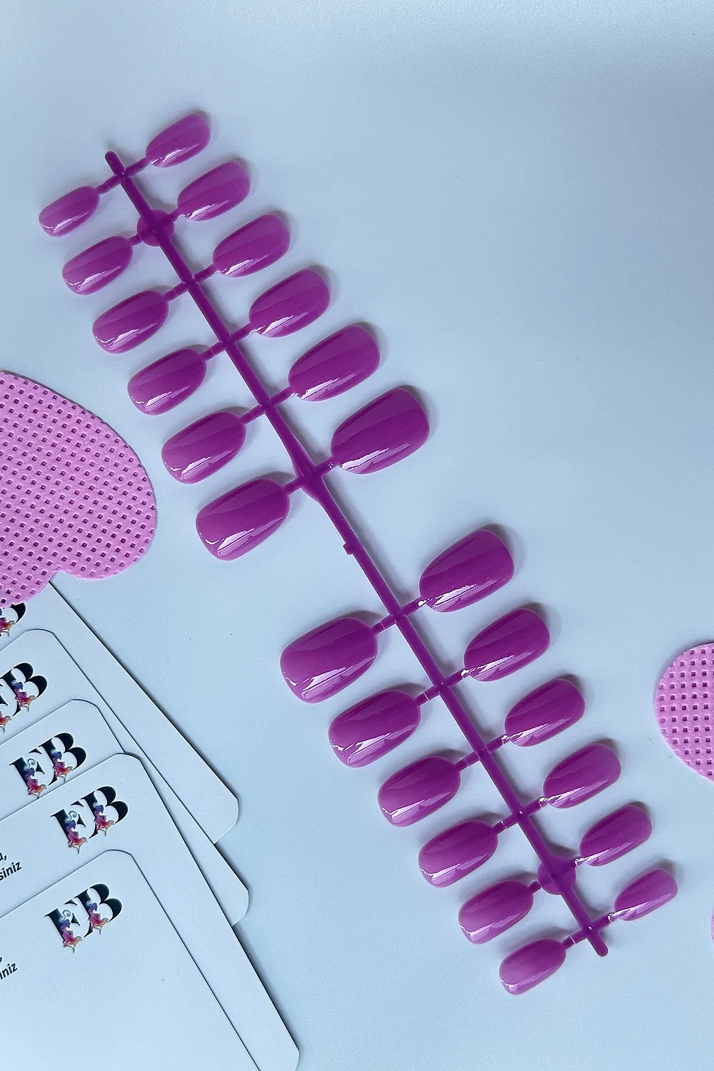ÖNEMLİ NOT: Takma tırnaklarınızı kullanmadan önce MUTLAKA TOP COAT uygulamanızı tavsiye ederiz; Burada gördüğünüz renklendirilmiş takma tırnak setleri nail art (tırnak süsleme sanatı) için de kullanılabilmektedir; Bu nedenle üzerlerinde koruyucu bir tabaka bulunmamaktadır; Buradaki tırnakları istediğiniz gibi dizayn edebilirsiniz; Eğer olduğu gibi, hiç bir değişiklik yapmadan kullanmak istiyorsanız, belirttiğimiz gibi renklerin solmaması veya çıkmaması için koruyucu katman olarak top coat sürünüz ve Easy Beauty takma tırnaklarınızı en özel günlerinizde keyifle kullanın; [Paket İçeriği] Farklı şekillerde ve farklı uzunluklarda sunulan bu takma tırnaklar plastik paket içerisinde 24 adet olarak sunulmaktadır; Sıkça Sorunlan Sorular: Çocuklar kullanabilir mi? Cilde zarar vermeyen yapıştırıcı alarak Easy Beauty takma tırnakları çocuklarınızın da kullanmasına izin verebilirsiniz; Üzerine oje sürülebilir mi? Evet takma tırnağınızın üzerine oje sürebilirsiniz; Hiç bir sakıncası yoktur; Kutusu var mı? Renkli takma tırnaklarınız plastik paket içerisinde kargo edilecektir; İçerisinde 24 adet çeşitli boylarda renkli takma tırnak vardır; Her tırnağa uyar mı? Şekil verebilir miyim? Paket içerisinde 24 adet tırnak gönderilecektir; 12 tırnak boyutu vardır; Genel olarak bütün tırnaklara uyacaktır; Büyük gelen tırnakları törpü ile tırnağınıza uygun hale getirebilirsiniz; Tırnaklar farklı şekillerde ve uzunlukta sunulmaktadır; Eğer şeklini veya uzunluğu beğenmezseniz törpü ile istediğiniz gibi ayarlayabilirsiniz; Takma tırnak neden atar?; Uygulama esnasında tırnağınız ile takma tırnak arasında herhangi bir toz veya boşluk kalması durumunda takma tırnak kısa zamanda atabilir; Tırnağınıza uygun olmayan (küçük veya büyük) cilde zarar vermeyen yapıştırıcı kullanır iseniz veya yapıştırıcı ile turnağınız arasında boşluk kalır ise takma tırnağınız atabilir; Sıvı yapıştırıcının gereğinden az uygulanması durumunda takma tırnağınız atabilir; Yapıştırıcıların hepsi sıcak suda özelliklerini yitirir; Bu nedenle elleriniz sıcak suda uzun süre kaldı ise (banyo, bulaşık) sonraki bir iki saat tırnaklarınızı korumanız ve zorlamamanız gerekmektedir; Aksi durumda tırnağınız atabilir; Uygulama esnasında tırnak yüzeyinin törpülenmemesi, alkolle tırnak üzerindeki yağın temizlenmemesi, tırnak etlerinin düzgün şekilde ittirilmenesi takma tırnağın atmasına sebep olabilir;
