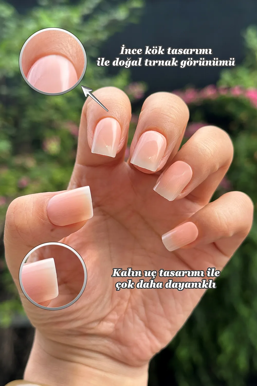 [Akıllı Tasarım] Tırnakların kök tarafının ince dizaynı sayesinde gerçek tırnağa yakın bir görünüm elde edersiniz. Tırnak ucunun kalın olması sayesinde ise Easy Beauty tırnaklar daha sağlamdır ve kolay kolay kırılmaz veya çatlamaz.