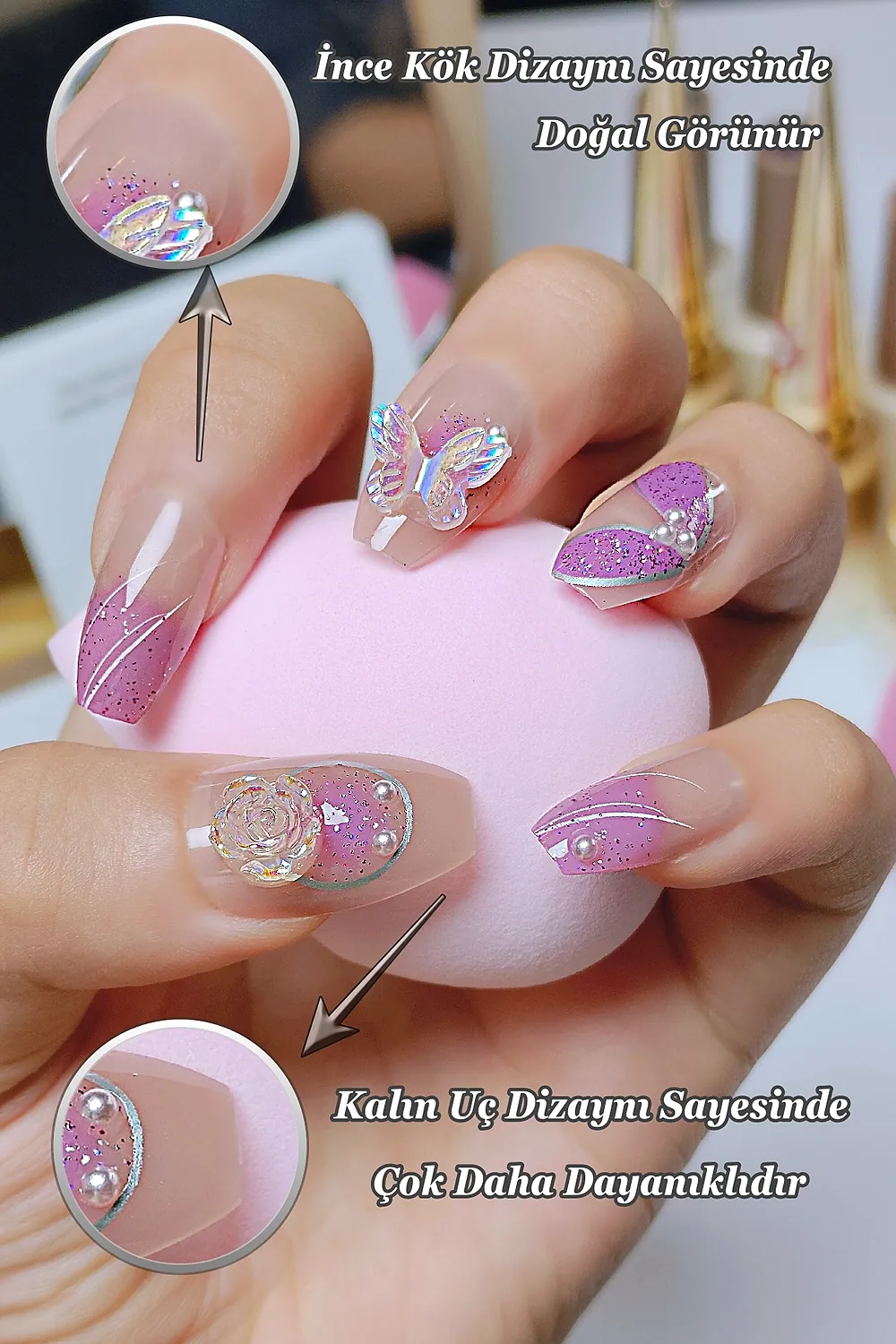 [Akıllı Tasarım] Tırnakların kök tarafının ince dizaynı sayesinde gerçek tırnağa yakın bir görünüm elde edersiniz. Tırnak ucunun kalın olması sayesinde ise Easy Beauty tırnaklar daha sağlamdır ve kolay kolay kırılmaz veya çatlamaz.