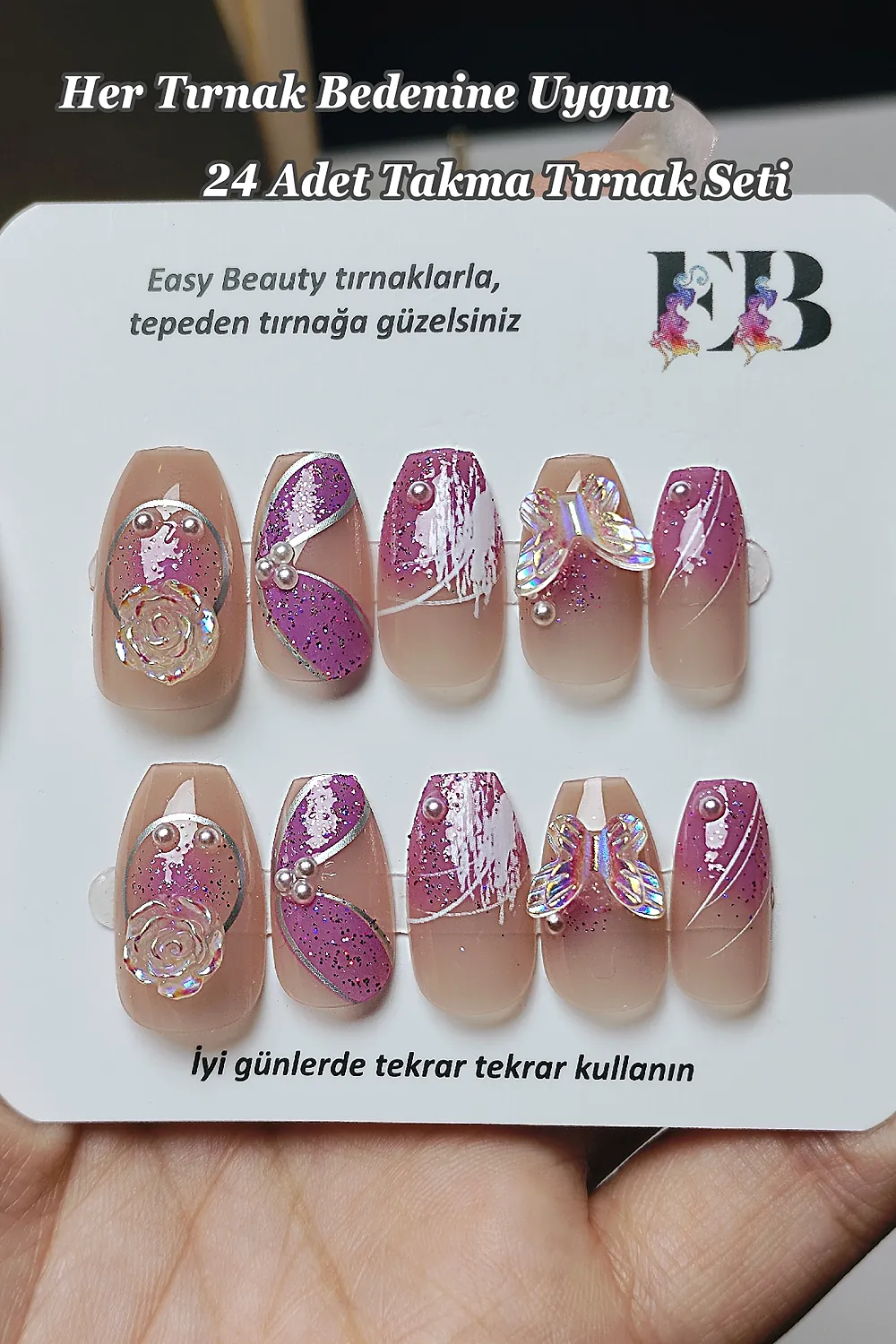 Easy Beauty takma tırnakları seçmeniz için başka bir neden ise resimde gördüğünüz ürünü satın alacak olmanızdır. Yani, burada gösterilen fotoğraflarda ya da videolarda herhangi bir oynama yapılmamıştır. Fotoğraf ve videolar Easy Beauty markası tarafından üretilmiştir, başka bir yerden kopyalanmamıştır.