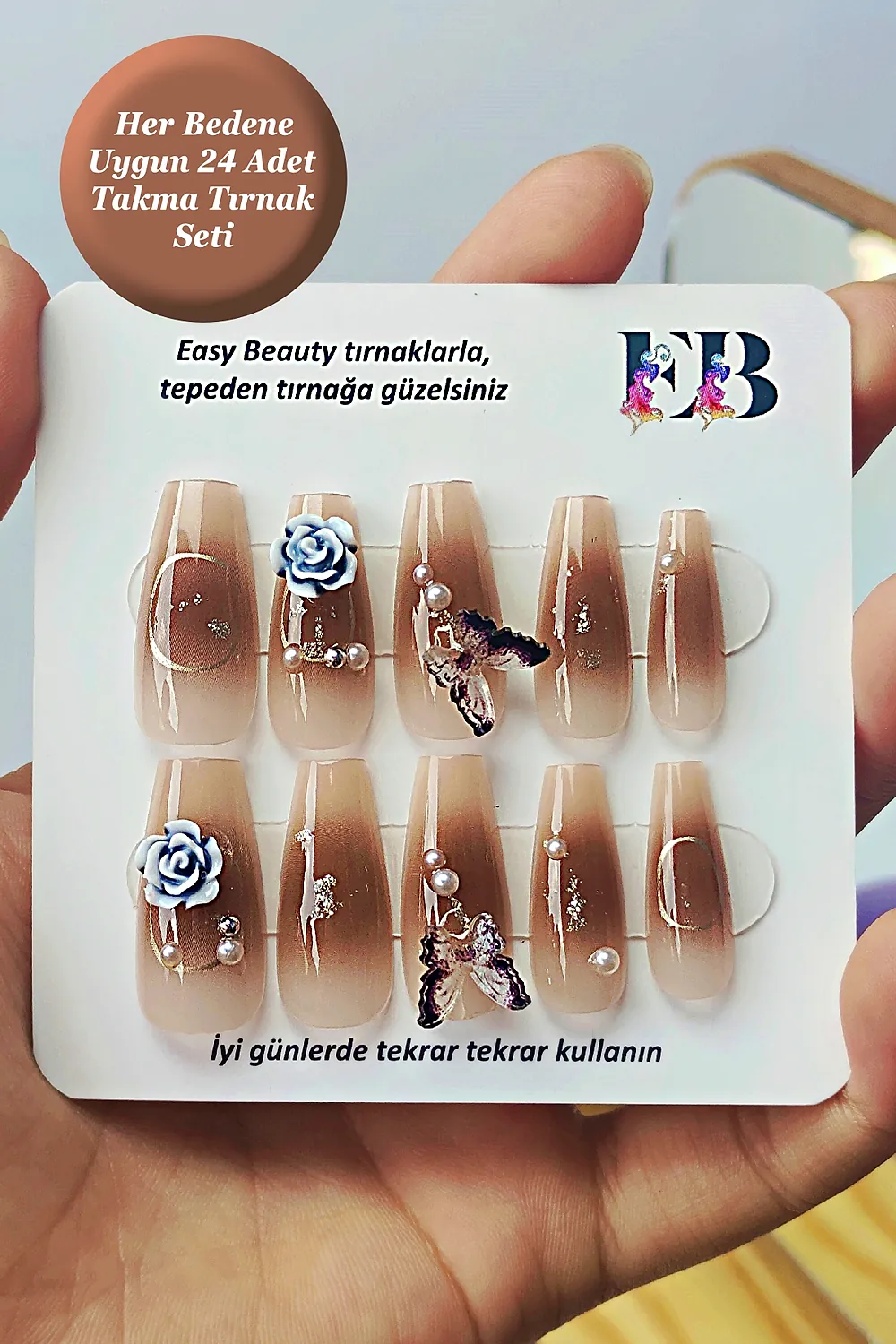 Easy Beauty takma tırnakları seçmeniz için başka bir neden ise resimde gördüğünüz ürünü satın alacak olmanızdır. Yani, burada gösterilen fotoğraflarda ya da videolarda herhangi bir oynama yapılmamıştır. Fotoğraf ve videolar Easy Beauty markası tarafından üretilmiştir, başka bir yerden kopyalanmamıştır.