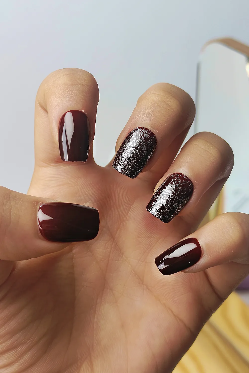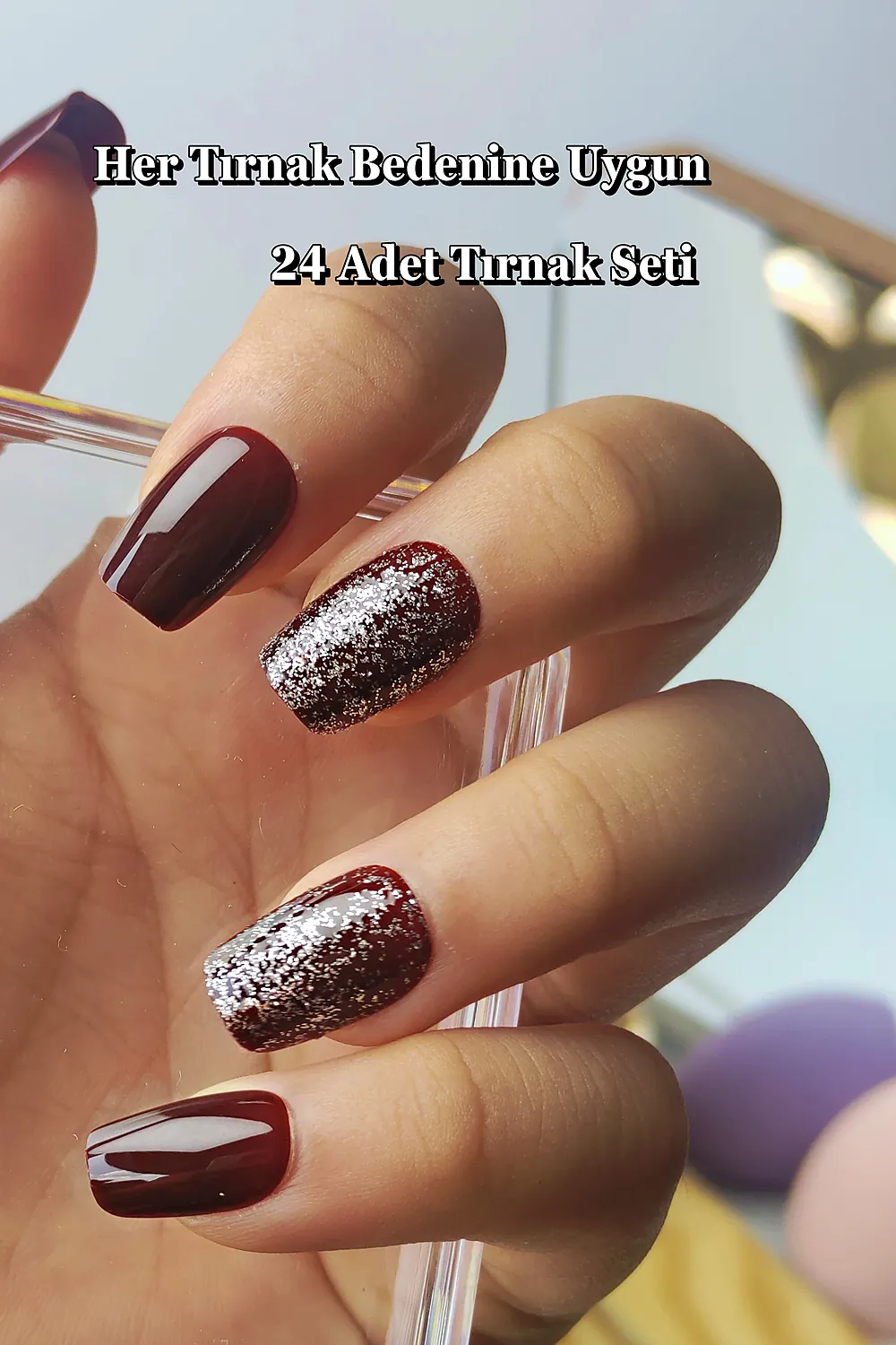 24 Adet Simli Bordo Renk Takma Tırnak Seti DY1205