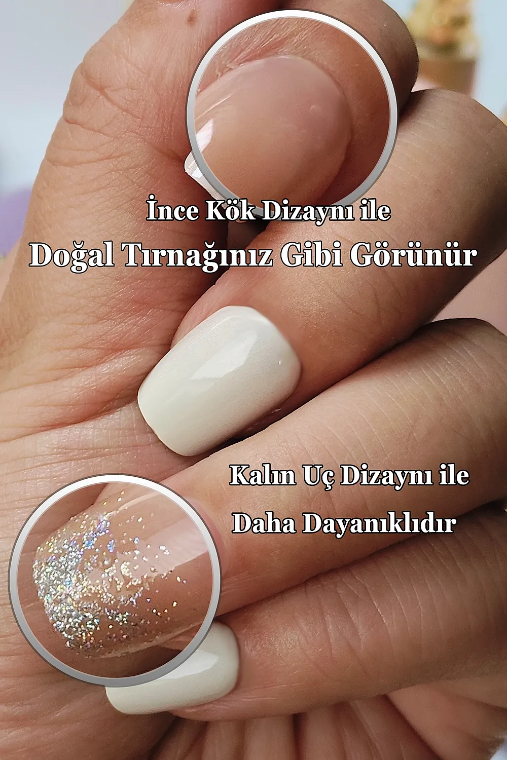 [Akıllı Tasarım] Tırnakların kök tarafının ince dizaynı sayesinde gerçek tırnağa yakın bir görünüm elde edersiniz. Tırnak ucunun kalın olması sayesinde ise Easy Beauty tırnaklar daha sağlamdır ve kolay kolay kırılmaz veya çatlamaz.