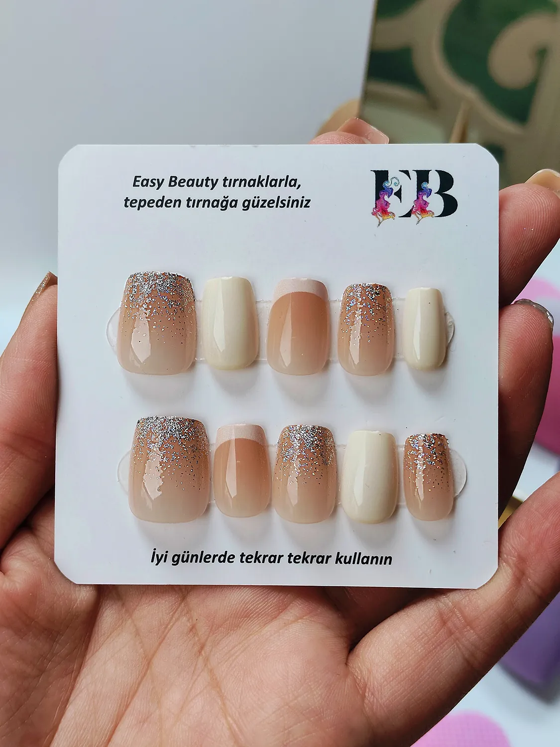 Easy Beauty takma tırnakları seçmeniz için başka bir neden ise resimde gördüğünüz ürünü satın alacak olmanızdır. Yani, burada gösterilen fotoğraflarda ya da videolarda herhangi bir oynama yapılmamıştır. Fotoğraf ve videolar Easy Beauty markası tarafından üretilmiştir, başka bir yerden kopyalanmamıştır.