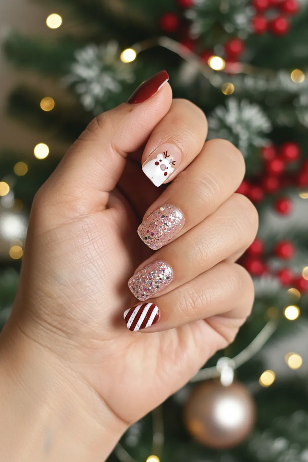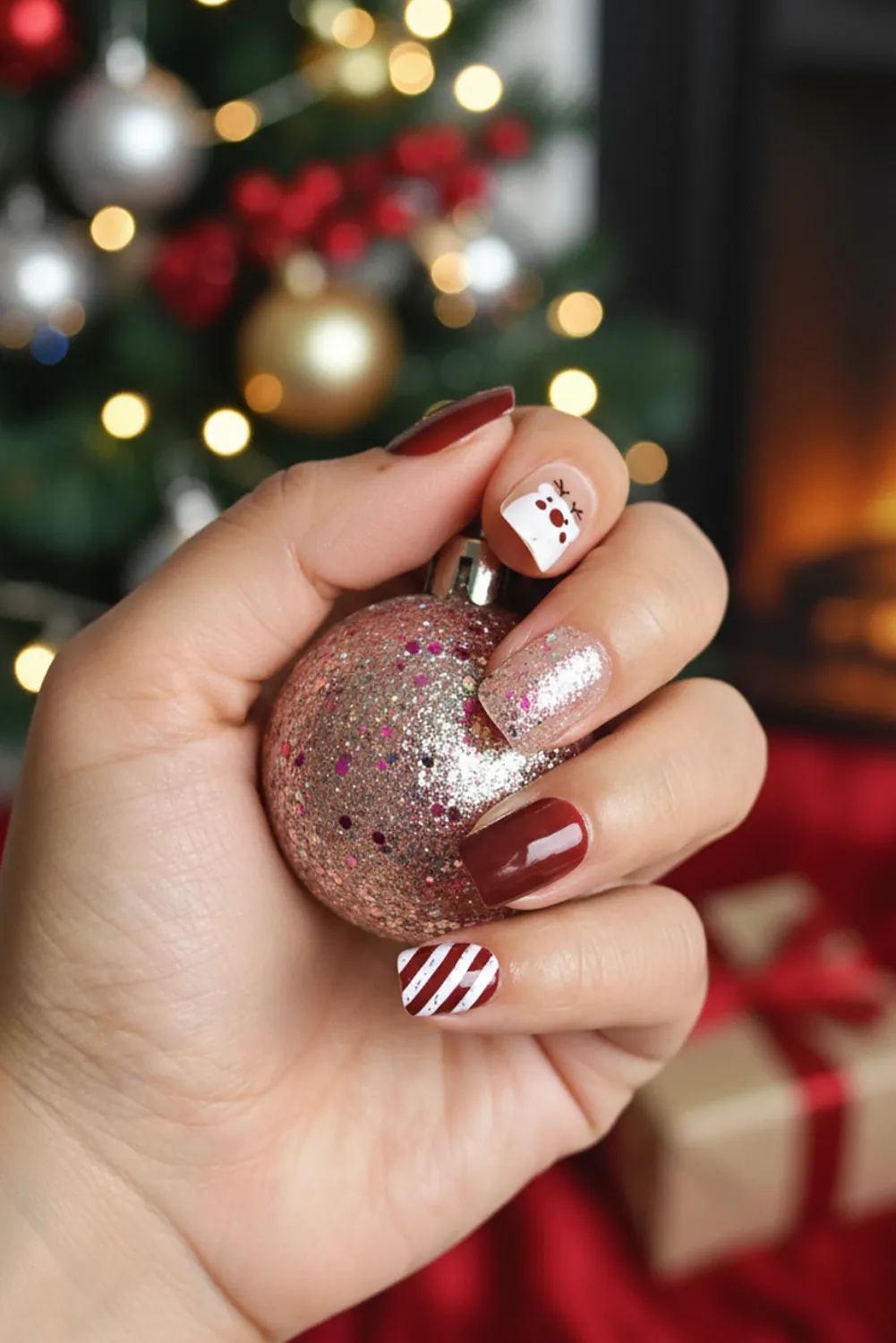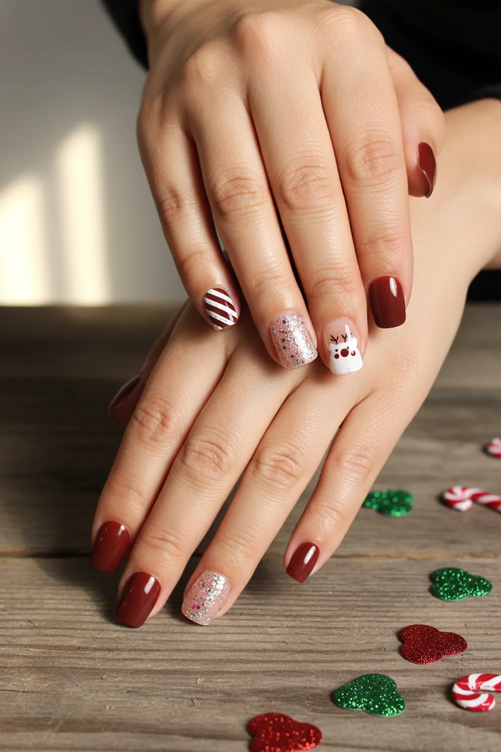 24 Adet Yılbaşı Desenli Kırmızı Kısa Takma Tırnak Seti R618
