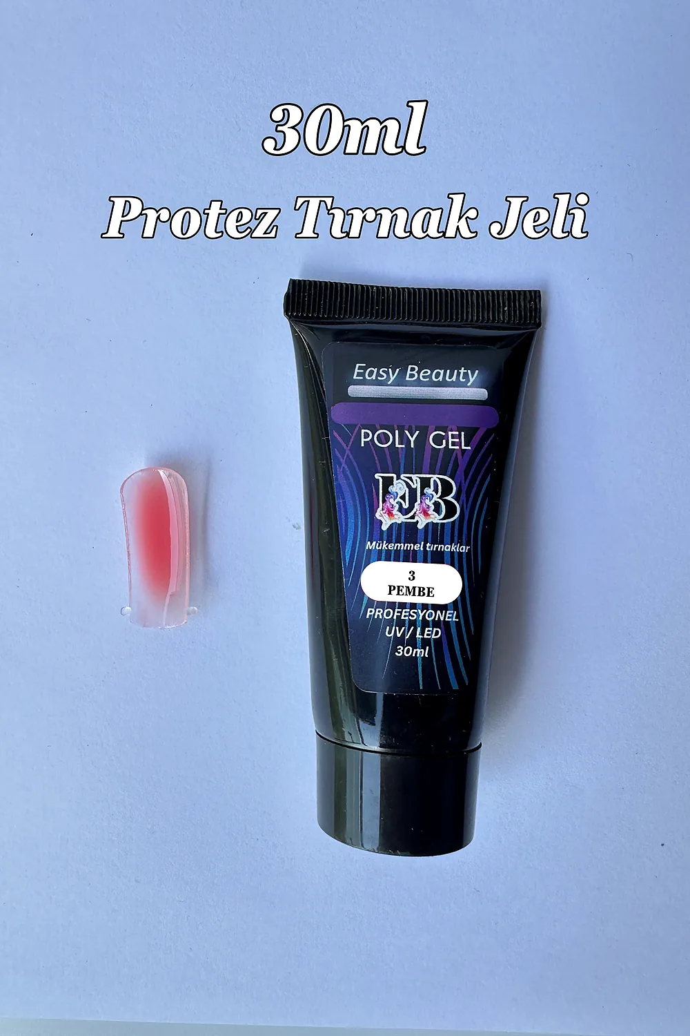 Sıradan poly jelleri unutun! İstediğiniz mükemmel manikür artık çok daha ekonomik ve çok daha uzun ömürlü.; ; Neden Diğerlerinden Farklı? ; Piyasadaki standart 15 ml ürünlerin iki katı hacim sunan 30 ml profesyonel poly jel’imiz, hem meraklılar hem de profesyonel manikürcüler için tasarlandı.; Aynı fiyata neredeyse iki ürün almış gibi olacaksınız! ; Kusursuzluğun Yeni Tanımı: ; Dev Ekonomi: 30 ml şeffaf poly jel ile çok daha fazla sayıda manikür yapın, müşteri başına maliyeti düşürün ve stok sıkıntısına veda edin.; ; Kullanım Kolaylığı: Özel formülü sayesinde akışkan kıvamıyla fırçadan mükemmel bir şekilde ayrılır.; Baloncuk yapmaz, kolayca sürülür ve dağıtılır.; İster ince katmanlar ister dolgun kaplamalar için ideal sunar.; ; Üstün : UV/LED ışığında anında ve mükemmel şekilde kurur.; Çıkmaz, soyulmaz ve uzun süreli parlaklığını korur.; Doğal tırnakları güçlendirir ve mükemmel bir baz katman olarak işlev görür.; ; Çok Yönlü Kullanım: Şeffaf yapısıyla, tek başına doğal ve parlak bir bitiş için kullanılabilir, jel renklerin altına baz olarak uygulanabilir veya üst katman olarak manikürünüzü mühürleyip koruyabilir.; ; Detaylı Kullanım Talimatları ; Poly jel kullanımı son derece basittir.; İşte adım adım mükemmel sonuç için kılavuzunuz: ; İhtiyacınız Olan Malzemeler: ; UV/LED Lamba ; %70+ izopropil alkol (dehydrator yerine) ve gerekirse jeli dağıtmak ve kolay sürülebilir hale getirmek için ; pH bağlayıcı/primer ; Tırnak toz fırçası ; 30 ml Poly Jel Ürününüz ; Yapışmayan manikür fırçası (opsiyonel, dağıtmak için) ; Hazırlık Aşaması (Çok Önemli!): ; Tırnak yüzeyini hafifçe törpüleyerek doğal tırnağın parlaklığını giderin (matlaştırın).; ; Bir kulak çubuğu veya fırça yardımıyla tırnak yüzeyini izopropil alkolle iyice silin.; Bu adım, yağ ve nemi uzaklaştırarak jelin tırnağa mükemmel yapışmasını sağlar.; ; İnce bir katman pH bağlayıcı (primer) uygulayın ve kurumaya bırakın.; (Bu adım, jelin ömrünü önemli ölçüde uzatır).; ; Uygulama Aşaması: ; Az Miktarda Ürün Kullanın! 30 ml ürününüz büyük olsa da her seferinde az miktarda (bir pirinç tanesi büyüklüğünde) almanız yeterlidir.; Fazla ürün taşmaya ve topaklanmaya neden olabilir.; ; Poly jeli ister kalıp tırnağın içine isterseniz kendi tırnağınıza sürün.; Bu işlem sizin alışkanlığınıza göre değişiklik gösterebilir.; ; Tırnağınızın ucunda kaln jel kalın olacaktır.; Bunu inceltmek için fırça ve alkol kullanabilirisniz.; ; Jeli ince ve eşit bir katman halinde yaymak çok önemlidir.; Kalın katmanlar tam kurumayabilir.; ; Hemen UV/LED lambanızın altında ürününüzün üzerinde yazan süre kadar (genellikle 60 saniye) kurutun.; ; İki katman uygulamanız önerilir.; İkinci katmanı da aynı şekilde uygulayıp kurutun.; ; Son Aşama: ; İsterseniz renkli jel veya desenler uygulayabilir, en son yine üst katman (top coat) olarak kullanıp aynı işlemleri tekrarlayabilirsiniz.