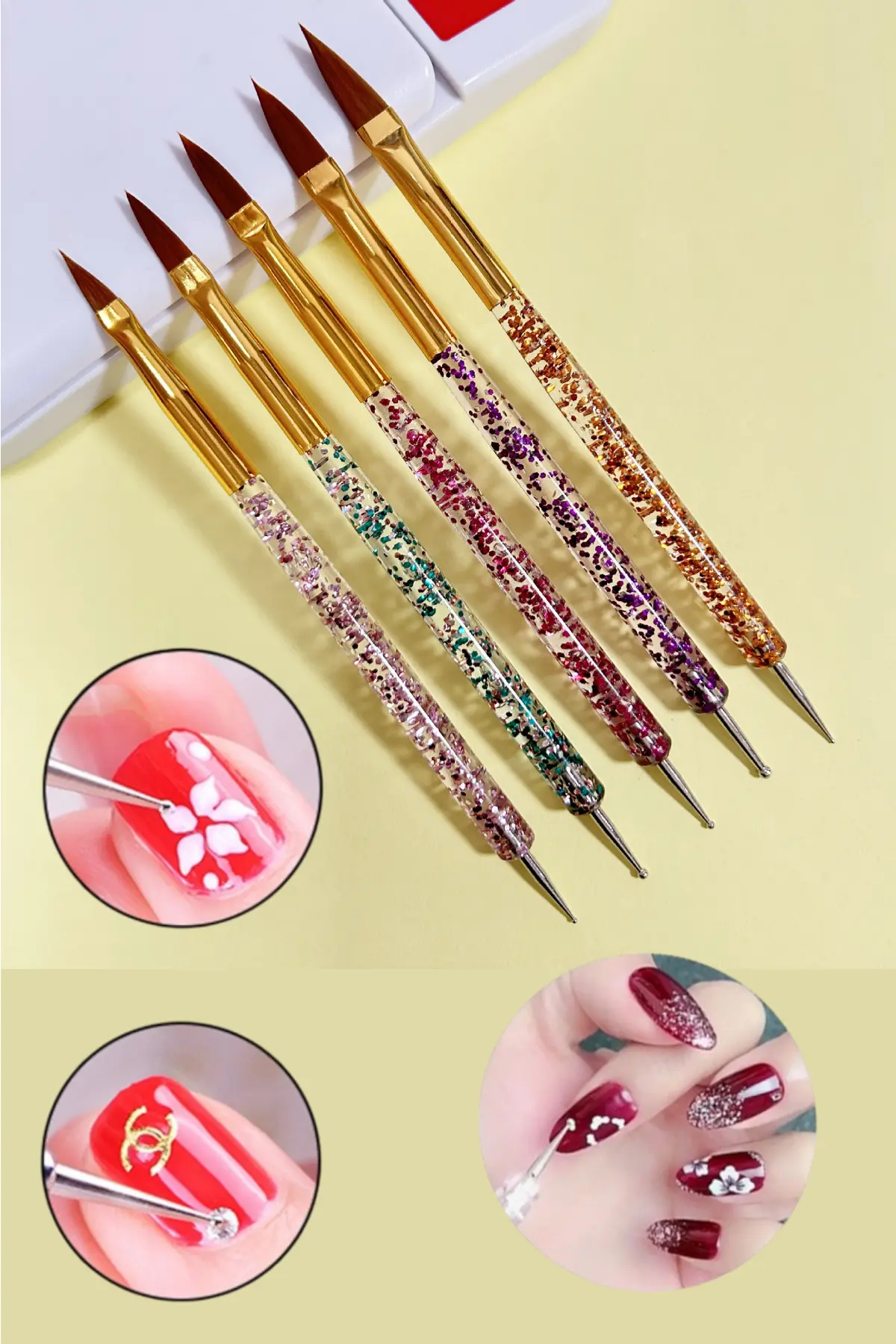 5 Adet Nail Art Fırça Seti, Fırçalı Tırnak Süsleme Desen Seti Dot Kalemi 5’Li Tırnak Boyama Nail Art