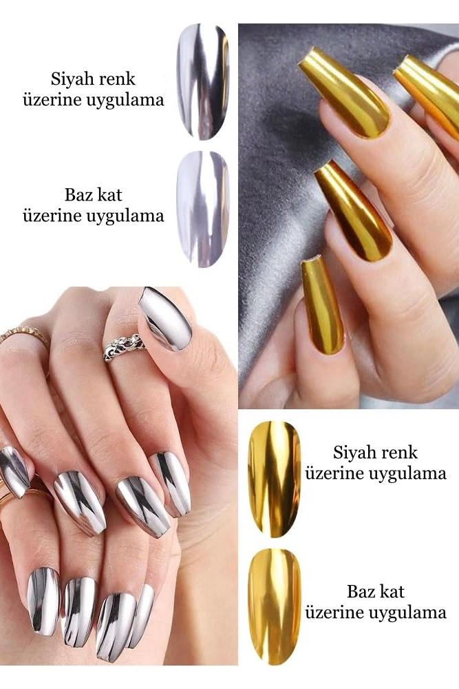 Tırnak süslemede kullanılan ve yüzlerce farklı dizayn yaratmanıza olanak sağlayan katı formdaki krom tozuna hayran kalacaksınız.;