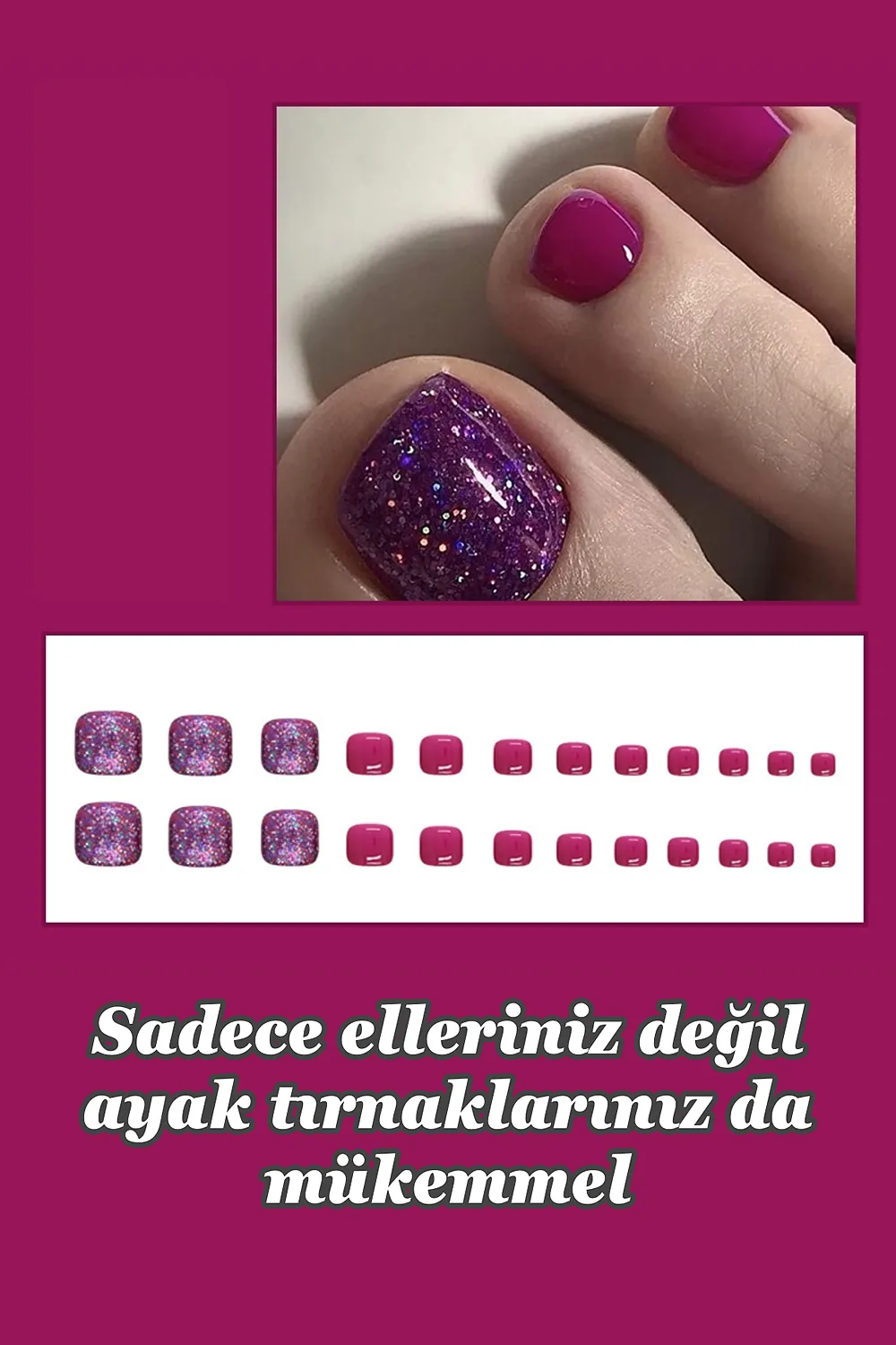 Ayak Takma Tırnak Kedi Gözü 24 Adet Ayak için Takma Tırnak-MY06