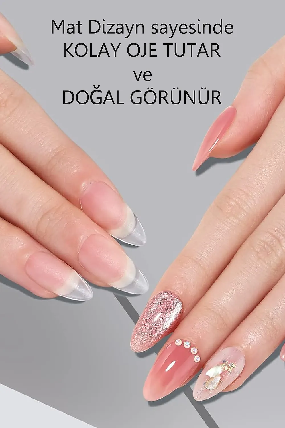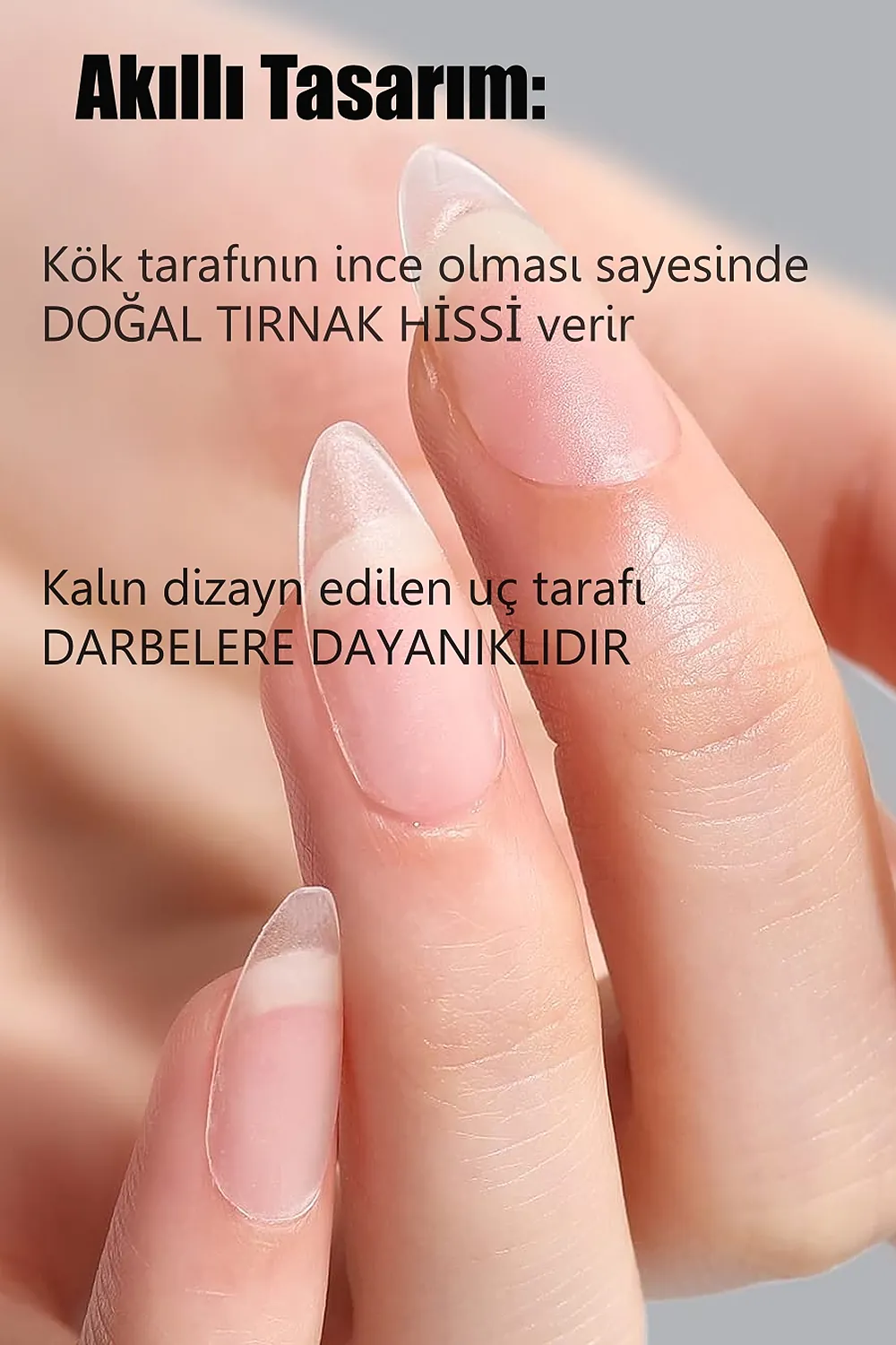 [Esnek Yapıda] Yeni nesil EASY BEAUTY jel tırnaklar tırnağınıza tam oturur ve Uzun süreli kullanılabilir.; Esnek jel tırnaklar tırnağınızı tam kaplar.; [Önceden Törpülenmiş] Normalde takma tırnakların Uzun süreli kullanılabilmesi ve daha iyi yapışması için kullanılmadan önce iç taraflarının törpülenmesi gerekmektedir.; Mat (önceden törpülenmiş) dizaynı sayesinde EASY BEAUTY jel tırnakları törpülemeye ihtiyaç duymadan kullanabilirsiniz.; [AkıllıTasarım] Tırnak köküne gelen kısmı daha ince dizayn edildiği için gerçek tırnağınız gibi görünür.;; [Daha Dayanıklı] EASY BEAUTY jel tırnakların uç tarafı daha kalın üretildiği için darbe aldığında kolay kolay kırılmaz; [Kolay Oje Tutar] Tırnakların dış yüzeyi de mat dizayn edilmiştir.; Bu sayede oje sürüldüğünde renk dağılımı daha iyi ve homojen olur ve gerçek tırnağa yakın bir görünüm sağlanır.; [Tam Size Göre] S, M, L olmak üzere toplam 3 boyutta üretilmiştir.; Tırnağınıza uygun boyutta olan EASY BEAUTY jel takma tırnakları seçin (uygun boyutun nasıl seçilmesi gerektiğini fotoğraflarda bulabilirsiniz).; [Harcarken Kazandırır] Her kutu içerisinde 5 farklı boyutta ve her boyuttan 20 adet olmak üzere toplam 100 adet tırnak tipsi vardır.; Tırnağınıza uygun boyutu doğru belirlediğiniz taktirde kutu içerisindeki tüm tırnakları kullanabilirsiniz ve harcadığınız para boşa gitmez.; 100 tırnağın 100’ü de tam size göre.; ; [Kullanımı Kolaydır] EASY BEAUTY yeni kutulama şekli sayesinde tırnak tipslerinizi kolaylıkla bulabilirsiniz.; [Dayanıklı Paketlenmiştir] Diğer takma tırnak tipslerinin kutusu yumuşak plastiktir ve kargoda çatlama, kırılma ve tırnakların hepsinin birbirine karışması gibi sorunlar yaşanmaktadır.; Bu şekilde satılan diğer markaların yorumlarını inceleyebilirsiniz Easy Beauty tırnak tipslerinin kutusu sert plastikten üretildiği için bu sorunların yaşanma ihtimali çok daha düşüktür ve siparişinizi aldığınızda hayal kırıklığına uğramazsınız ;