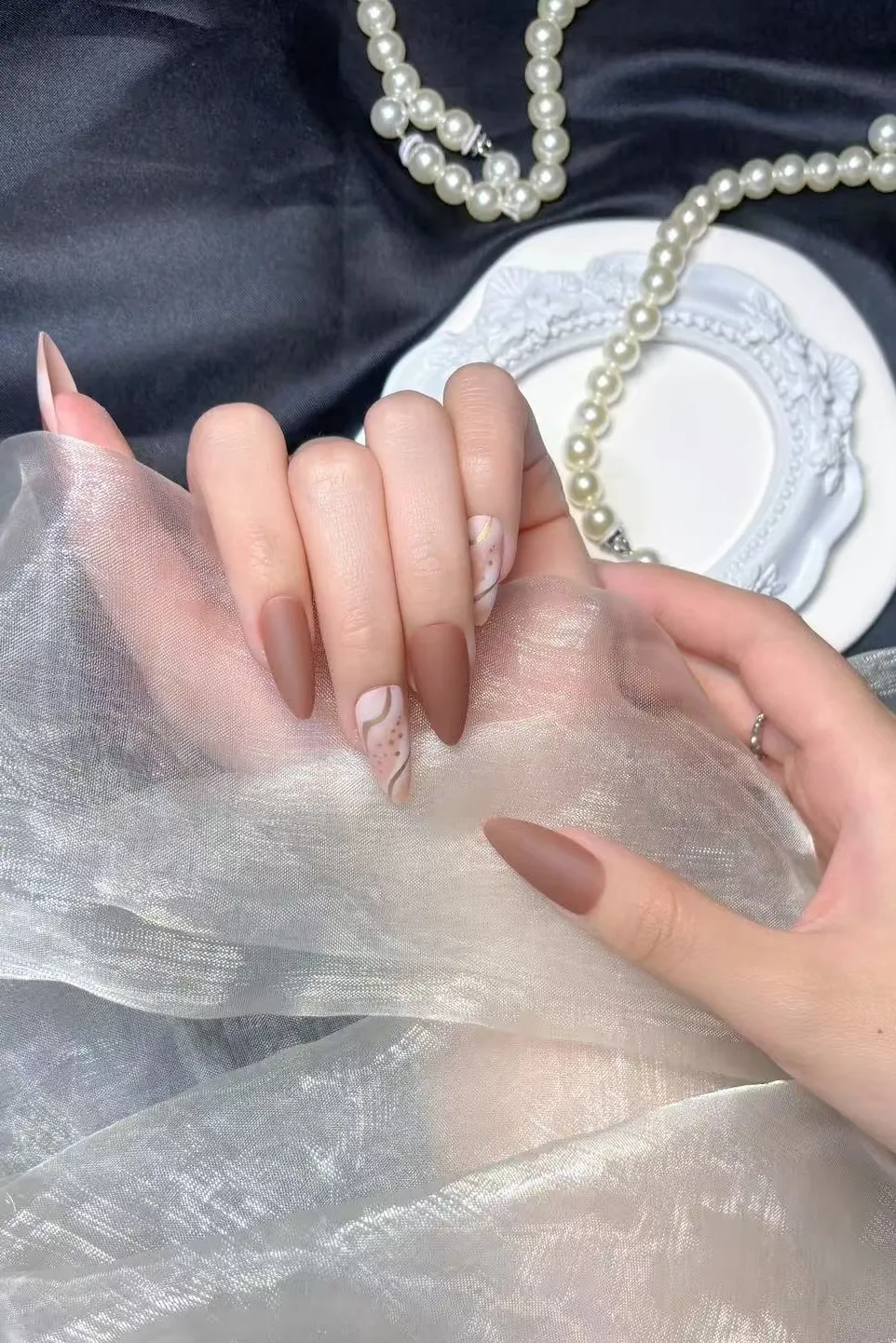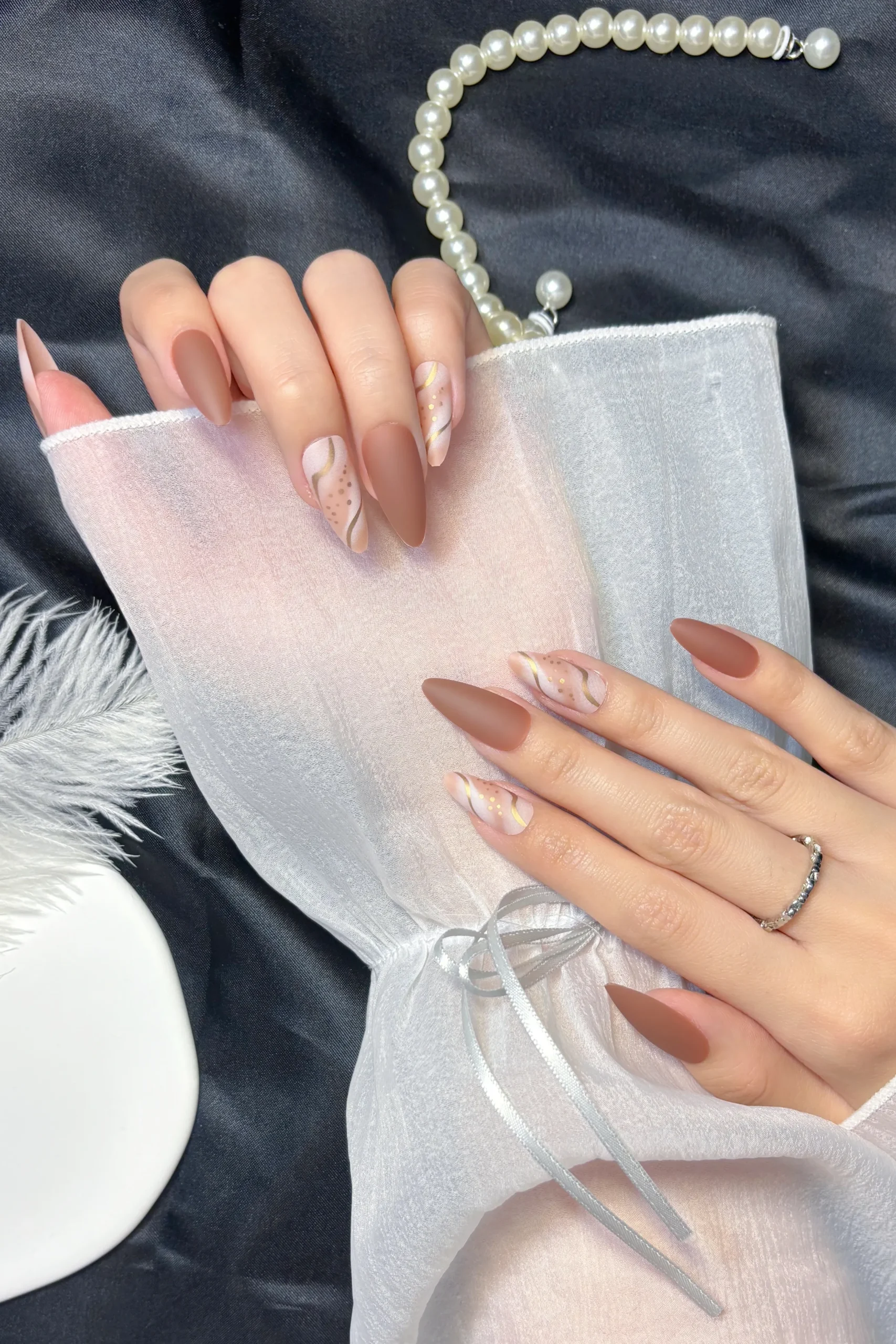 Badem Tırnak Kahverengi Orta Uzunlukta 24 Adet Takma Tırnak Seti W1489