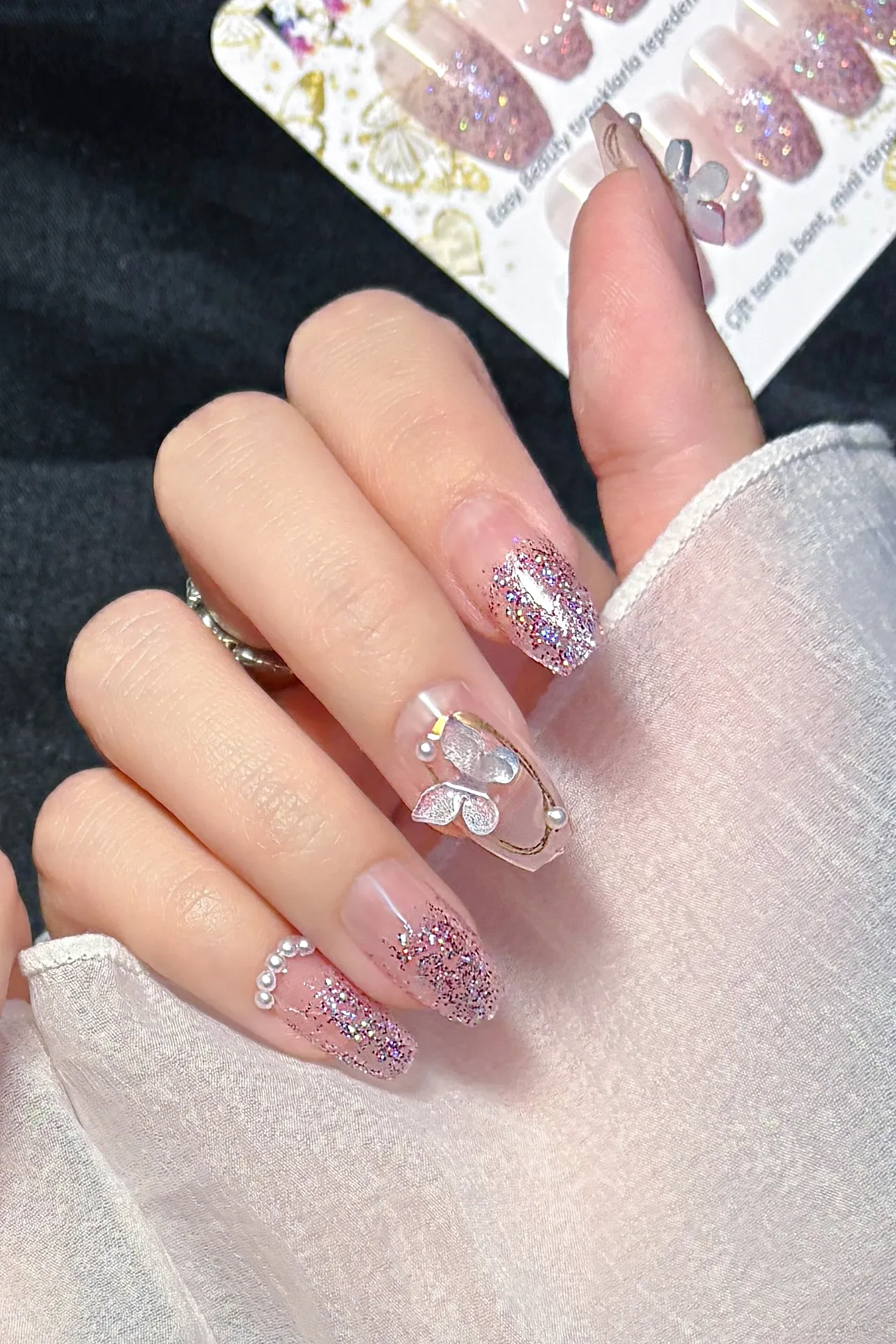 Balerin Takma Tırnak Simli Kelebekli 24 Adet Takma Tırnak Seti Z343
