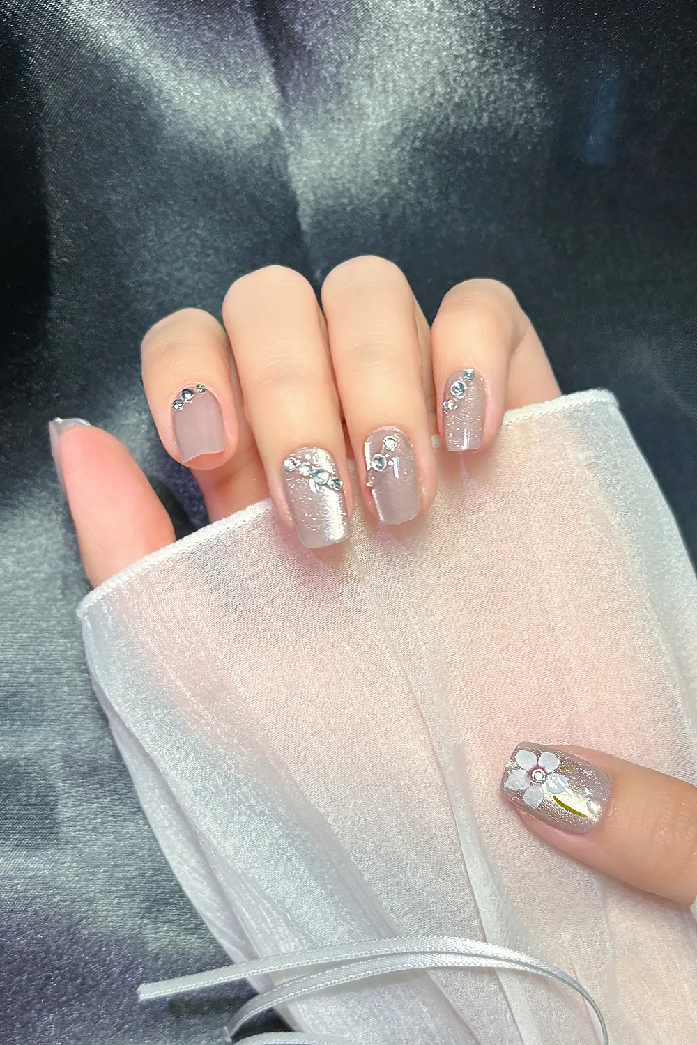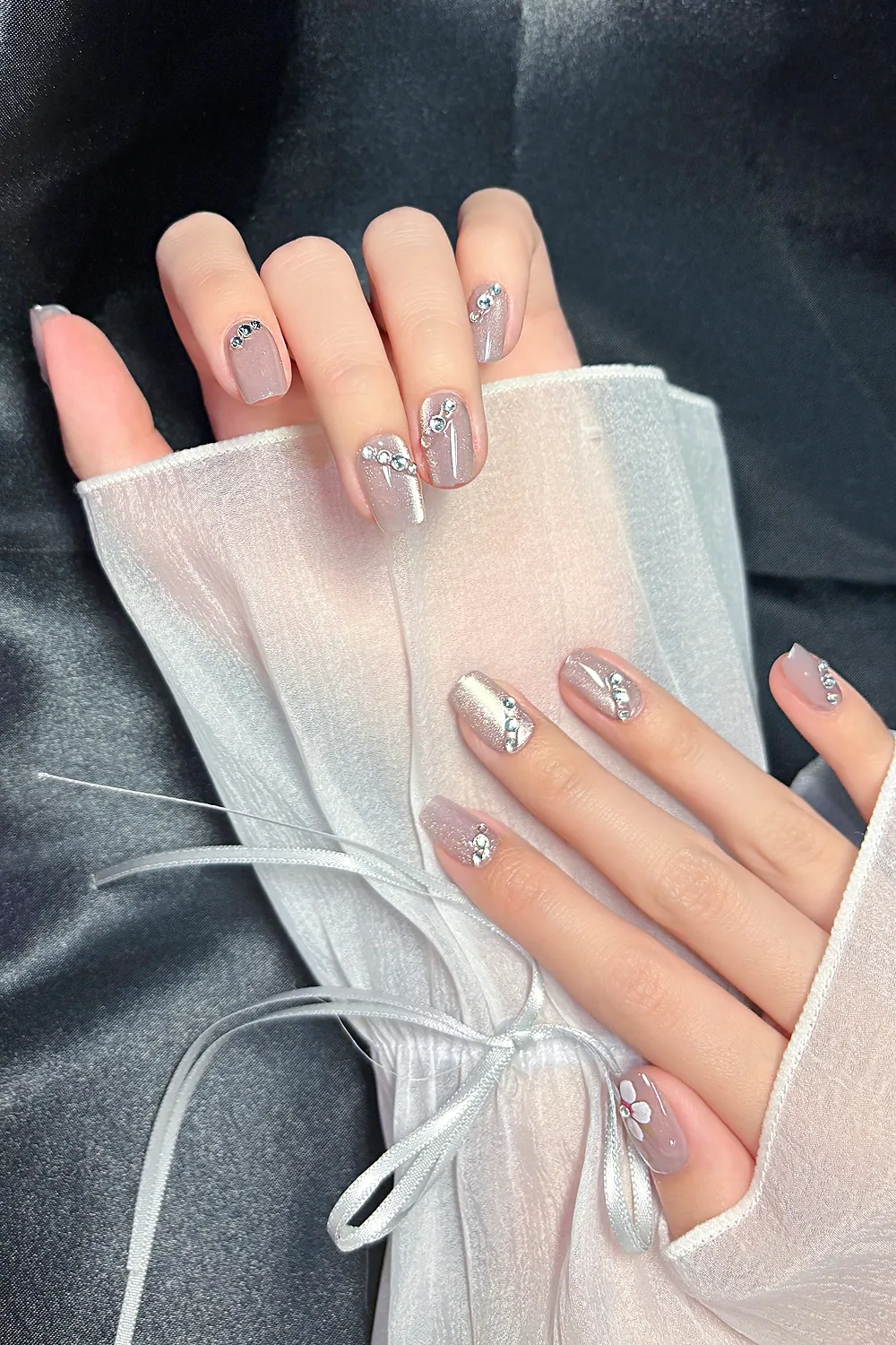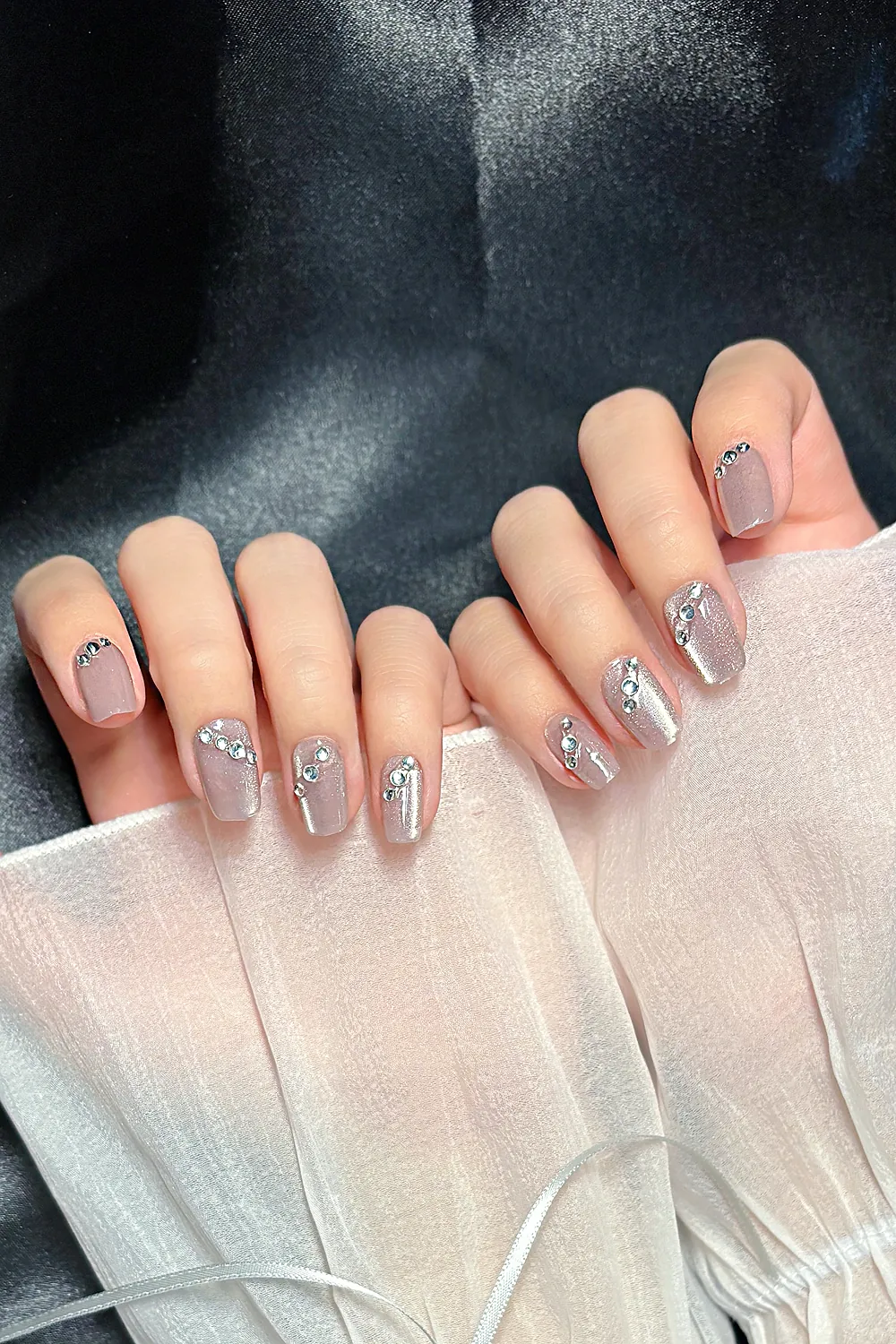 Naturel Kedi Gözü Protez Tırnak 10 Adet El Yapımı Takma Tırnak Seti 2313