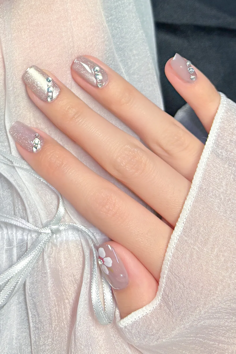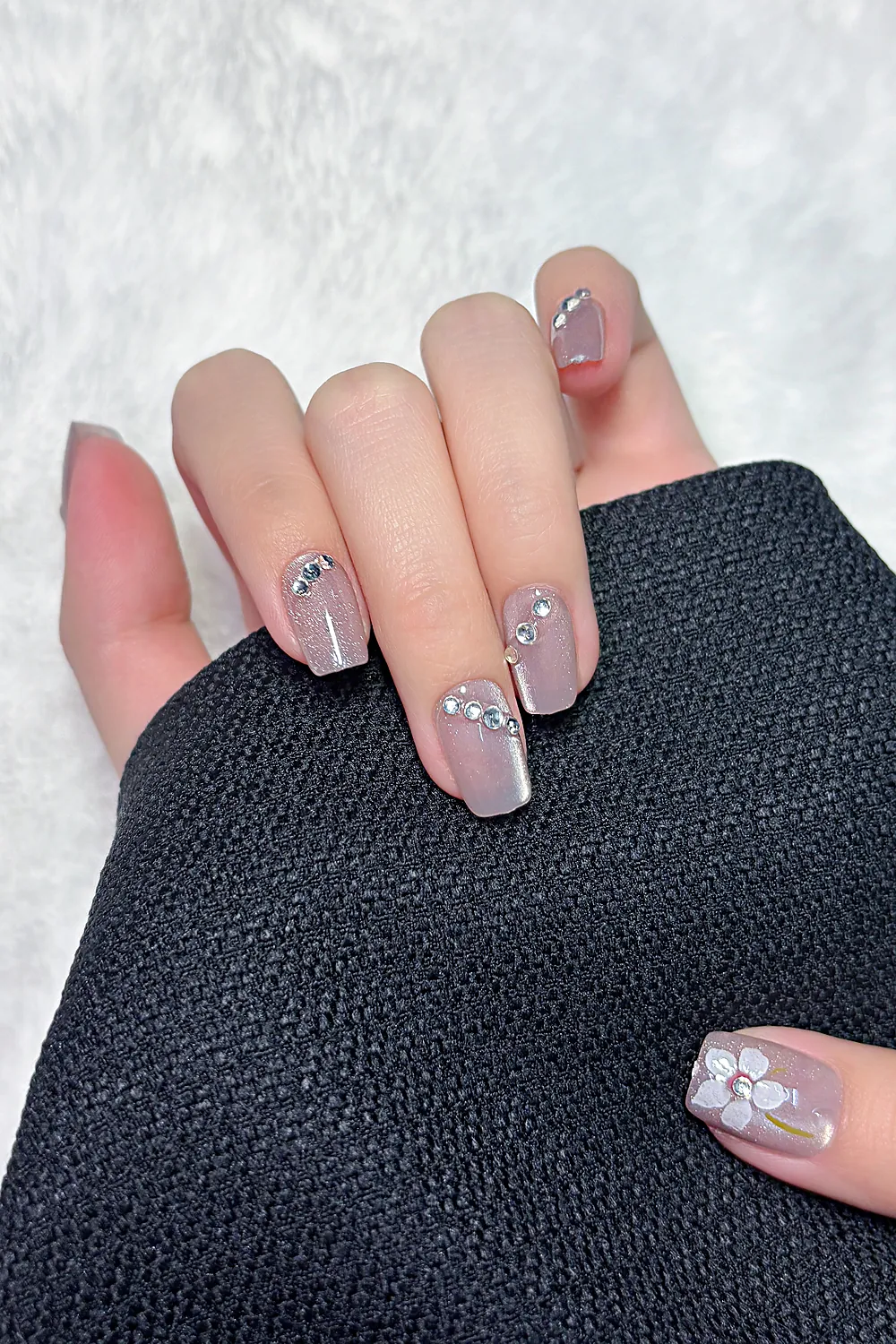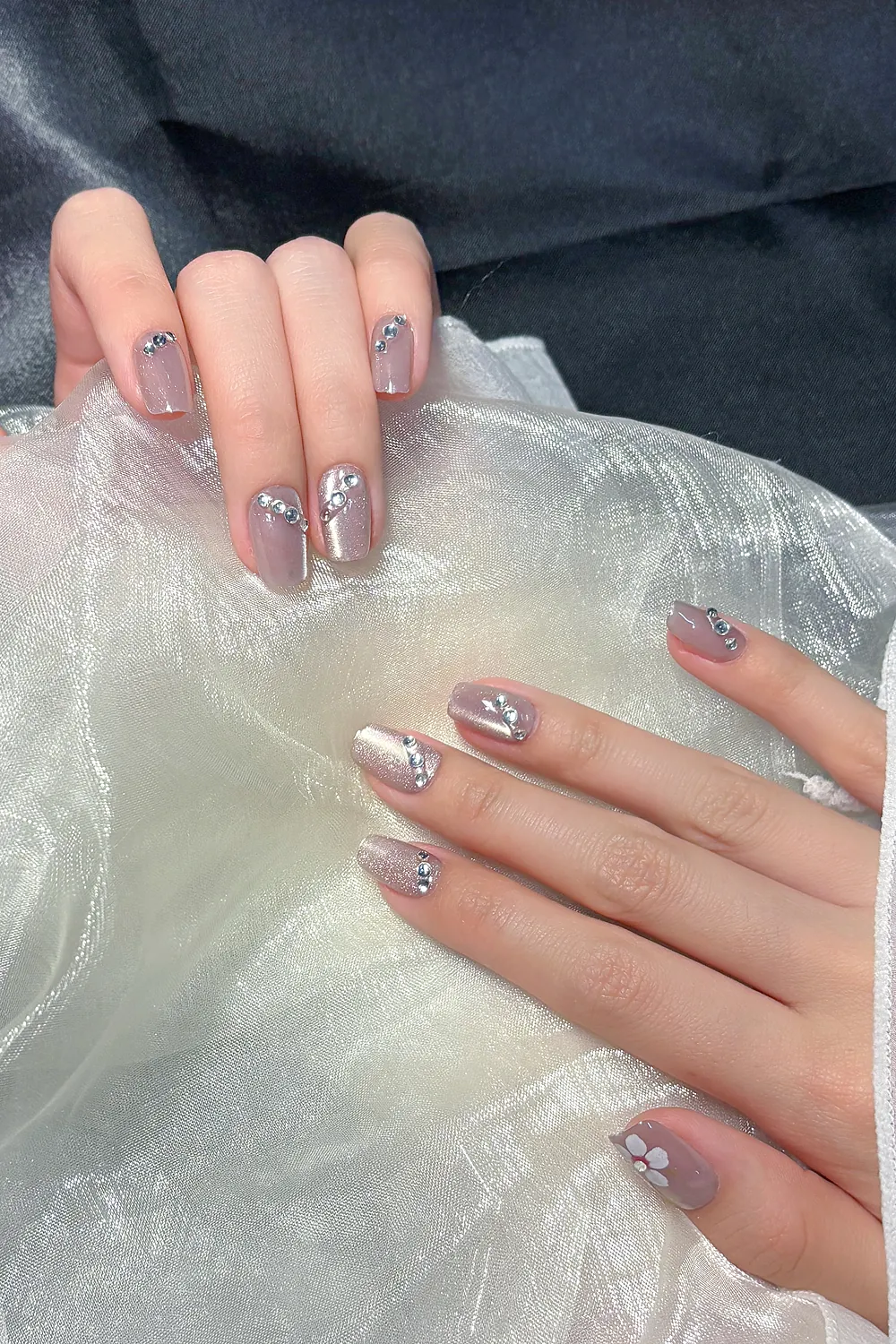 Naturel Kedi Gözü Protez Tırnak 10 Adet El Yapımı Takma Tırnak Seti 2313