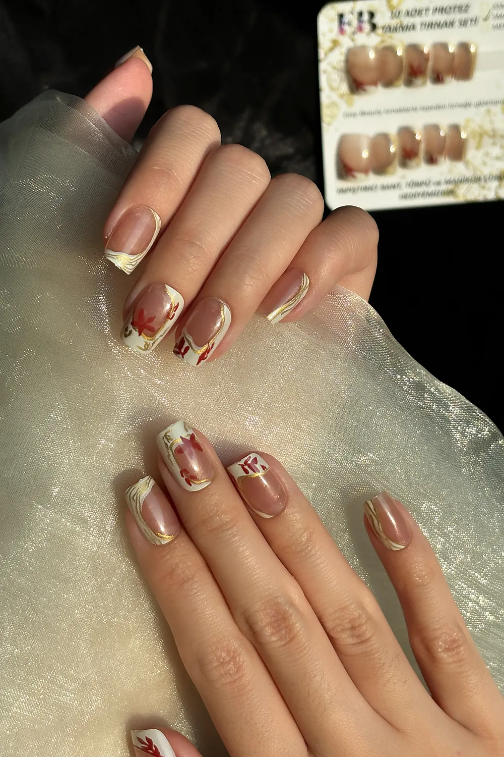 French Protez Tırnak 10 Adet El Yapımı Takma Tırnak Seti 2402