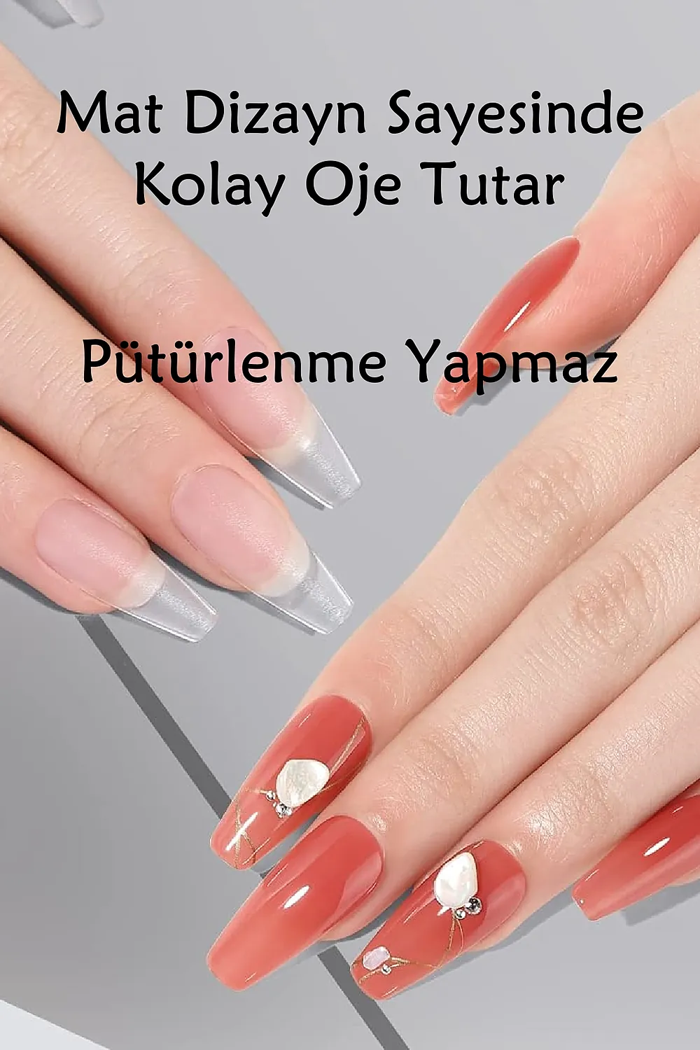 [Esnek Yapıda] Yeni nesil EASY BEAUTY jel tırnaklar tırnağınıza tam oturur ve Uzun süreli kullanılabilir.; Esnek jel tırnaklar tırnağınızı tam kaplar.; [Önceden Törpülenmiş] Normalde takma tırnakların Uzun süreli kullanılabilmesi ve daha iyi yapışması için kullanılmadan önce iç taraflarının törpülenmesi gerekmektedir.; Mat (önceden törpülenmiş) dizaynı sayesinde EASY BEAUTY jel tırnakları törpülemeye ihtiyaç duymadan kullanabilirsiniz.; [AkıllıTasarım] Tırnak köküne gelen kısmı daha ince dizayn edildiği için gerçek tırnağınız gibi görünür.;; [Daha Dayanıklı] EASY BEAUTY jel tırnakların uç tarafı daha kalın üretildiği için darbe aldığında kolay kolay kırılmaz; [Kolay Oje Tutar] Tırnakların dış yüzeyi de mat dizayn edilmiştir.; Bu sayede oje sürüldüğünde renk dağılımı daha iyi ve homojen olur ve gerçek tırnağa yakın bir görünüm sağlanır.; [Tam Size Göre] S, M, L olmak üzere toplam 3 boyutta üretilmiştir.; Tırnağınıza uygun boyutta olan EASY BEAUTY jel takma tırnakları seçin (uygun boyutun nasıl seçilmesi gerektiğini fotoğraflarda bulabilirsiniz).; [Harcarken Kazandırır] Her kutu içerisinde 5 farklı boyutta ve her boyuttan 20 adet olmak üzere toplam 100 adet tırnak tipsi vardır.; Tırnağınıza uygun boyutu doğru belirlediğiniz taktirde kutu içerisindeki tüm tırnakları kullanabilirsiniz ve harcadığınız para boşa gitmez.; 100 tırnağın 100’ü de tam size göre.; ; [Kullanımı Kolaydır] EASY BEAUTY yeni kutulama şekli sayesinde tırnak tipslerinizi kolaylıkla bulabilirsiniz.; [Dayanıklı Paketlenmiştir] Diğer takma tırnak tipslerinin kutusu yumuşak plastiktir ve kargoda çatlama, kırılma ve tırnakların hepsinin birbirine karışması gibi sorunlar yaşanmaktadır.; Bu şekilde satılan diğer markaların yorumlarını inceleyebilirsiniz Easy Beauty tırnak tipslerinin kutusu sert plastikten üretildiği için bu sorunların yaşanma ihtimali çok daha düşüktür ve siparişinizi aldığınızda hayal kırıklığına uğramazsınız ;