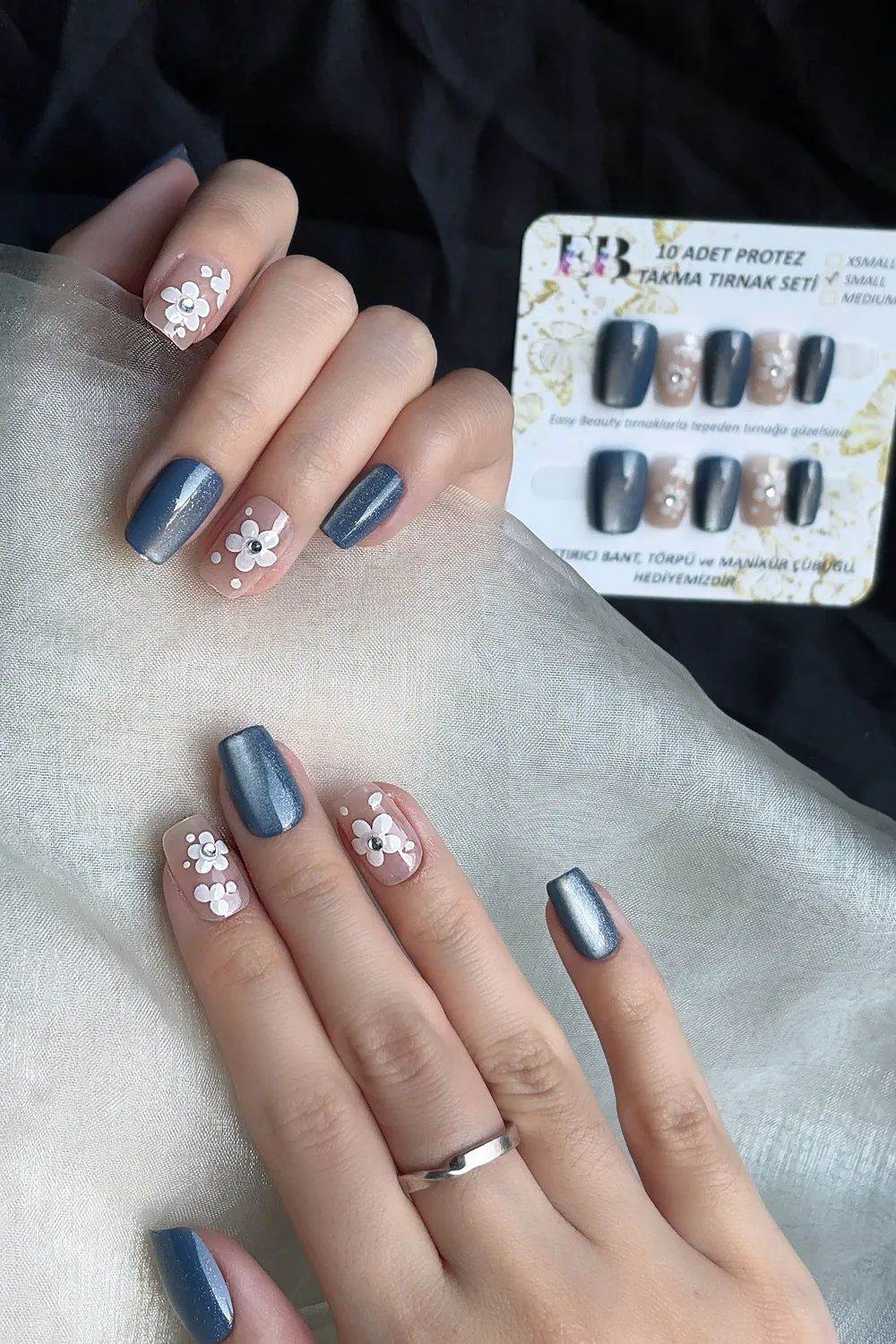 Cat Eye Protez Tırnak 10 Adet El Yapımı Takma Tırnak Seti 2208