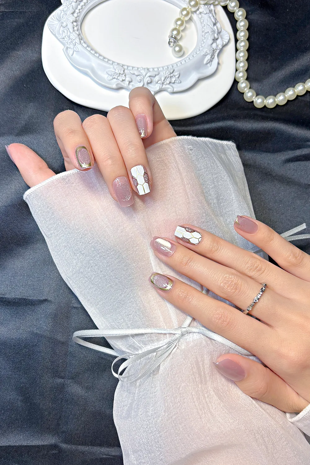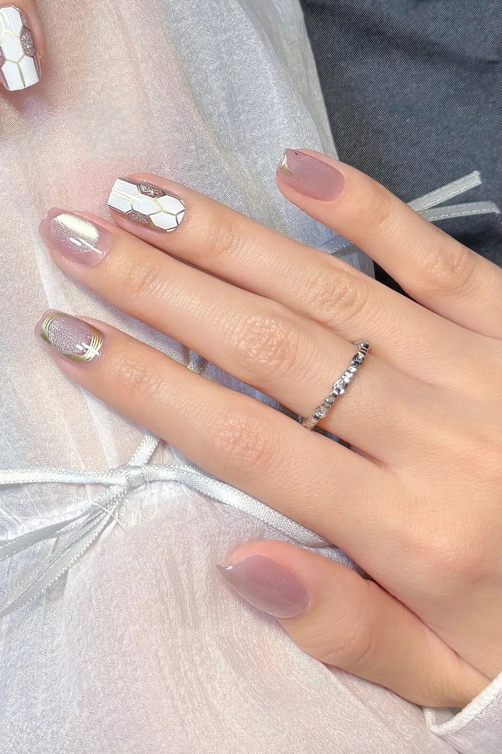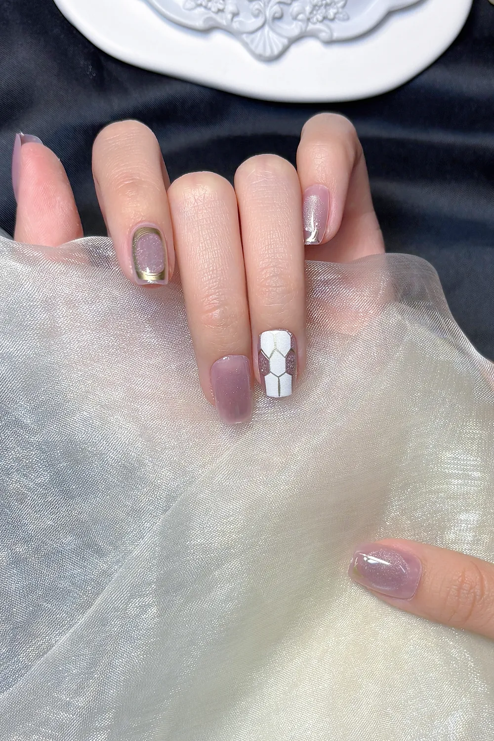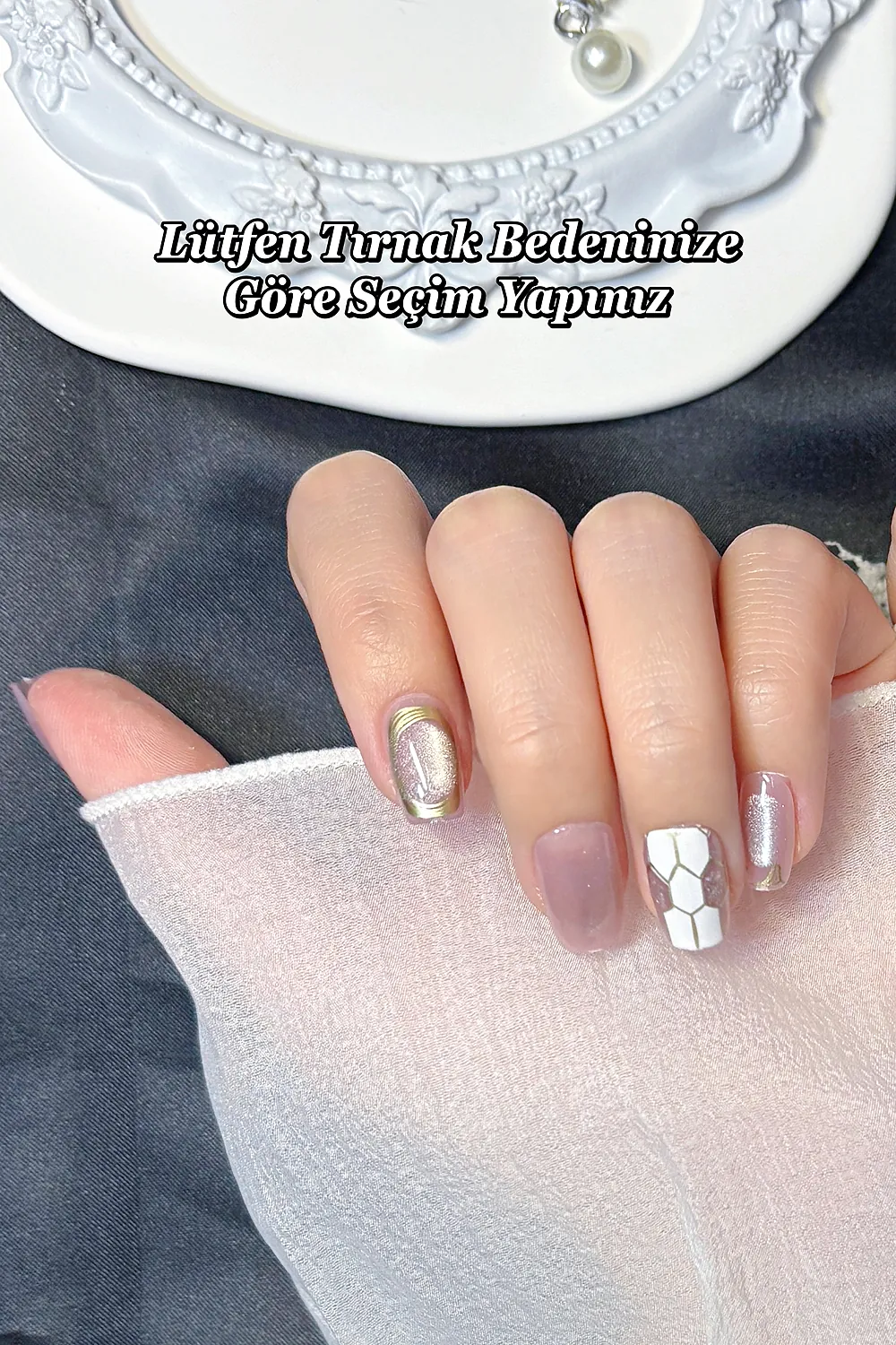 Naturel Kedi Gözü Protez Tırnak 10 Adet El Yapımı Takma Tırnak Seti 2308