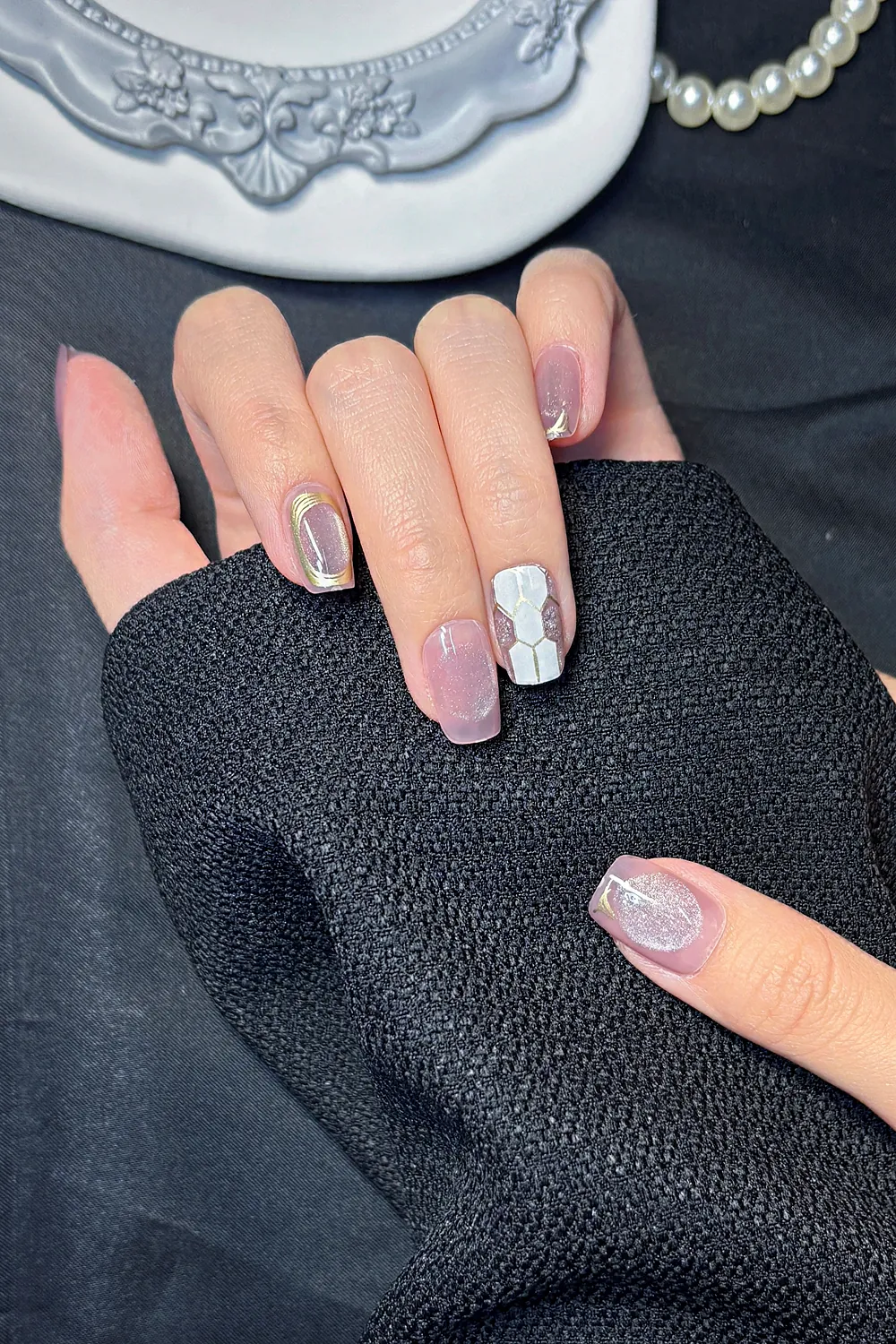 Cat Eye Protez Tırnak 10 Adet El Yapımı Takma Tırnak Seti 2208