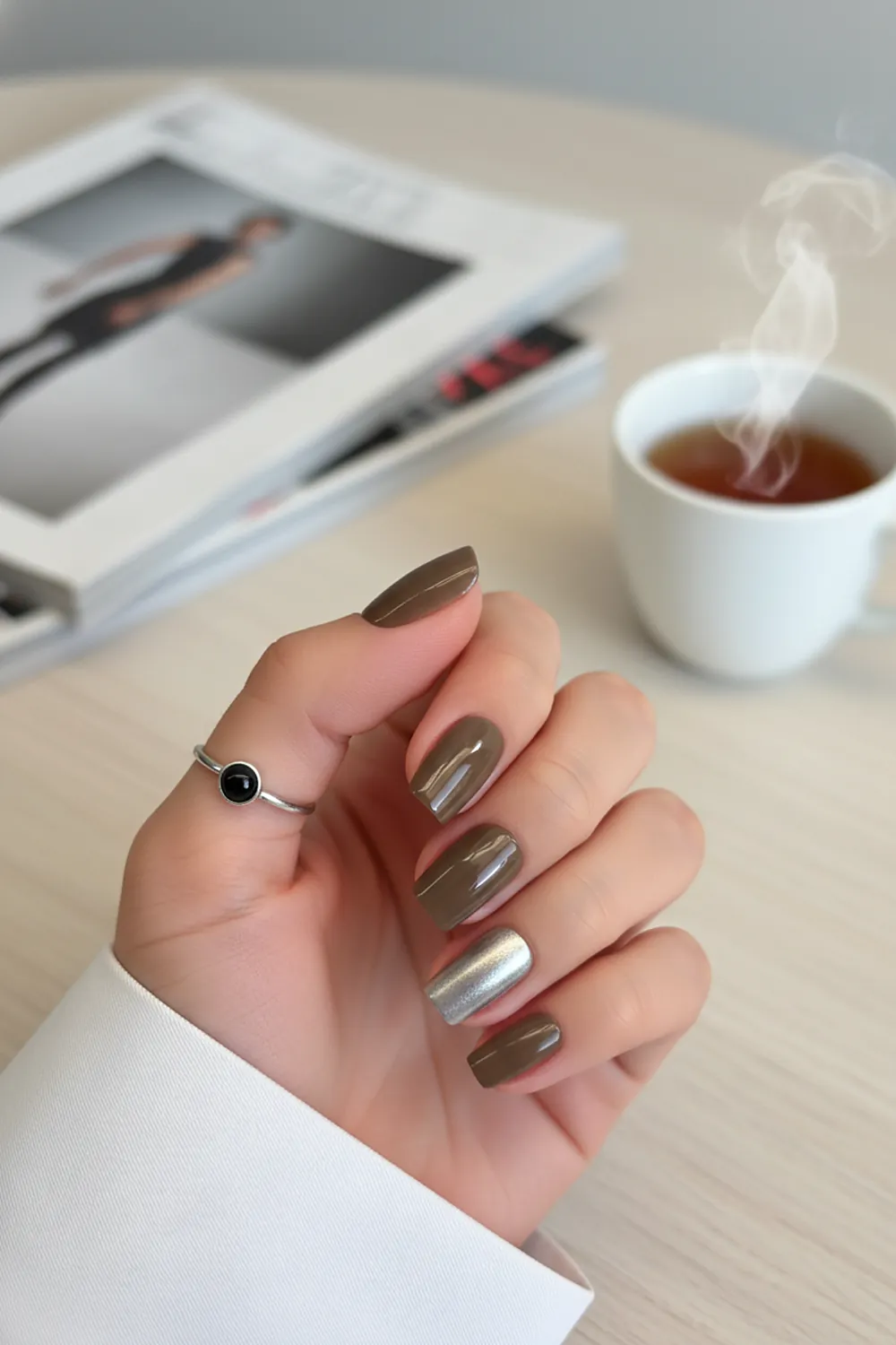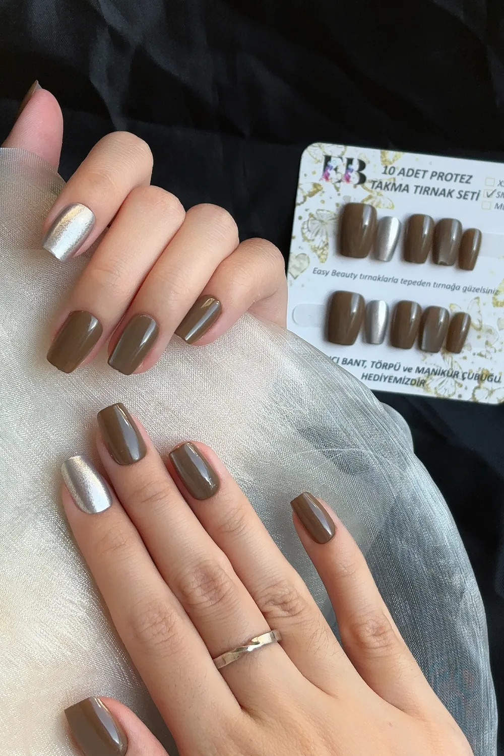 Naturel Kedi Gözü Protez Tırnak 10 Adet El Yapımı Takma Tırnak Seti 2313