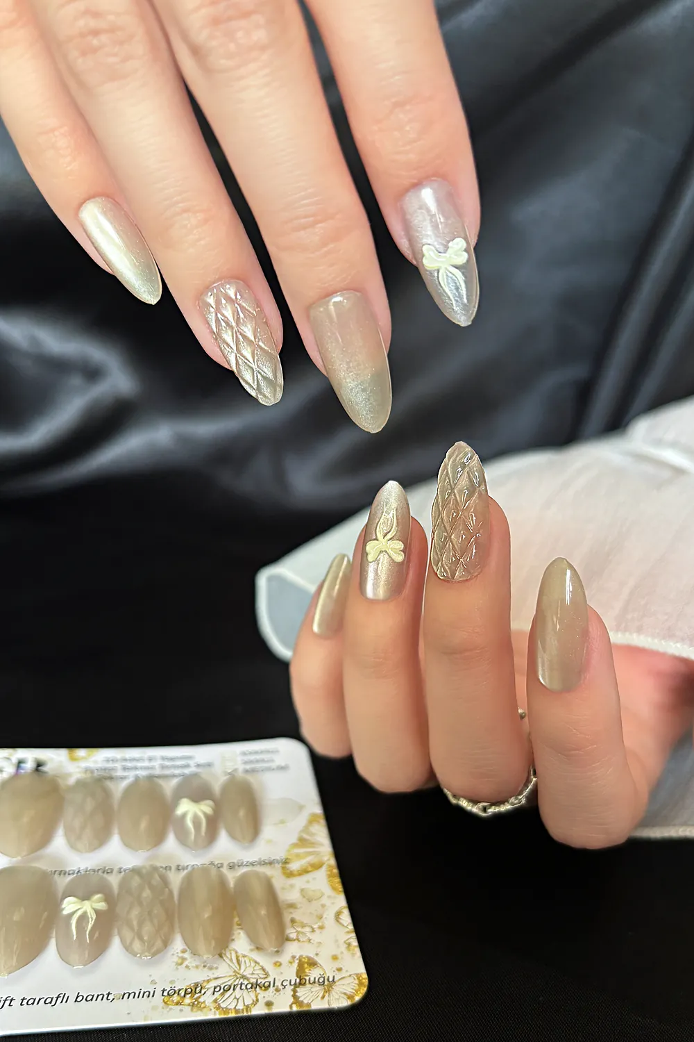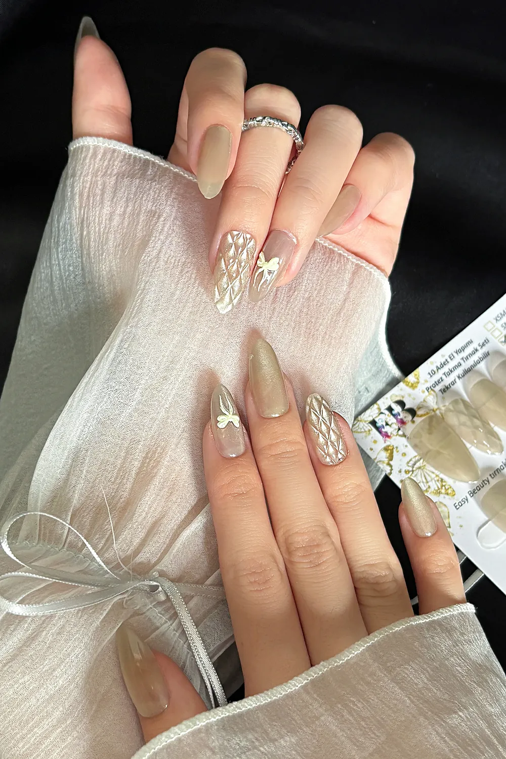 Kedi Gözü Orta Badem Tırnak 10 Adet Takma Tırnak Seti T174