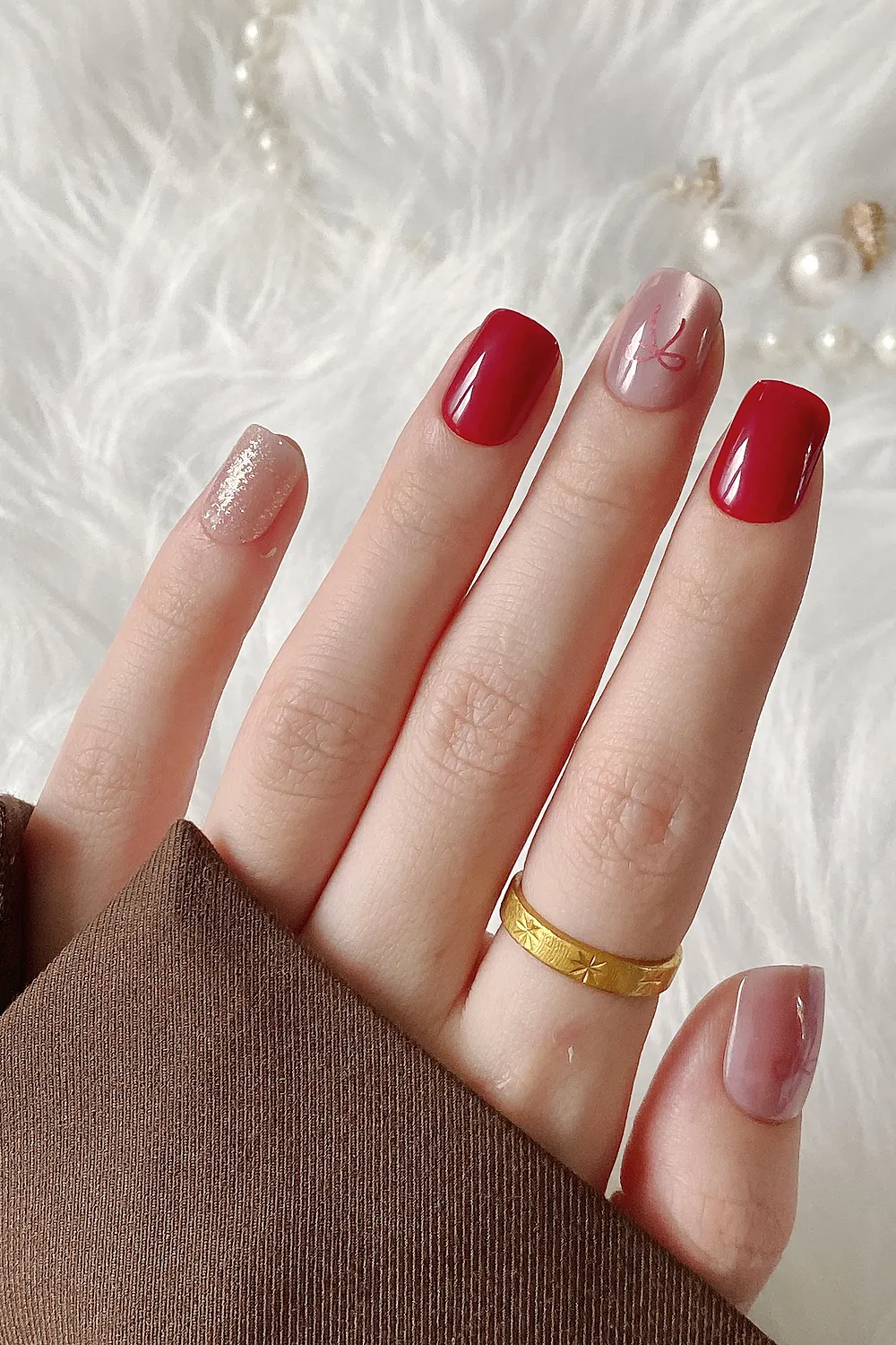 Kırmızı 24 Adet Kedi Gözü Takma Tırnak Seti Kısa Tırnak Küt Model MY141